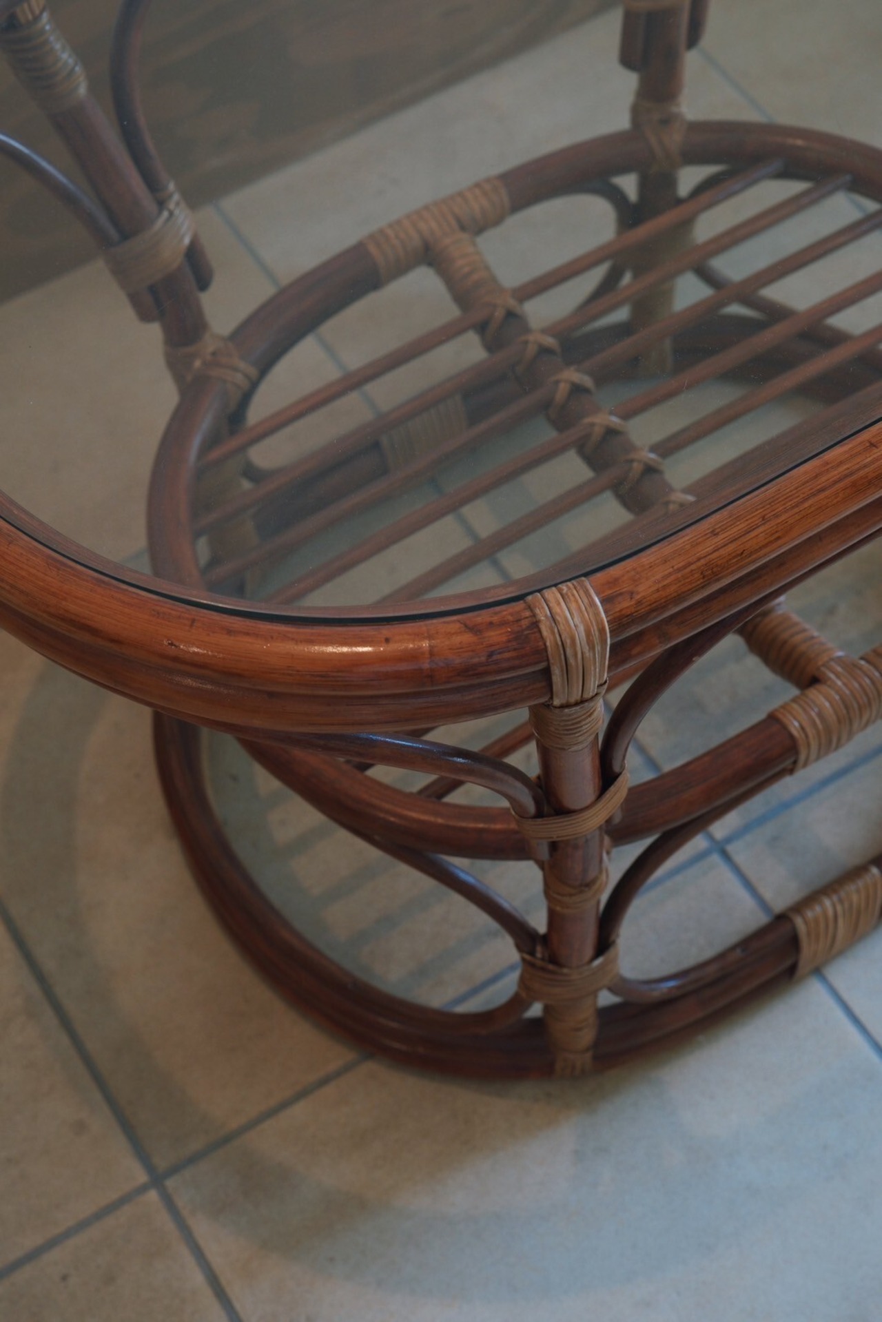 人気のガラストップラタンテーブル