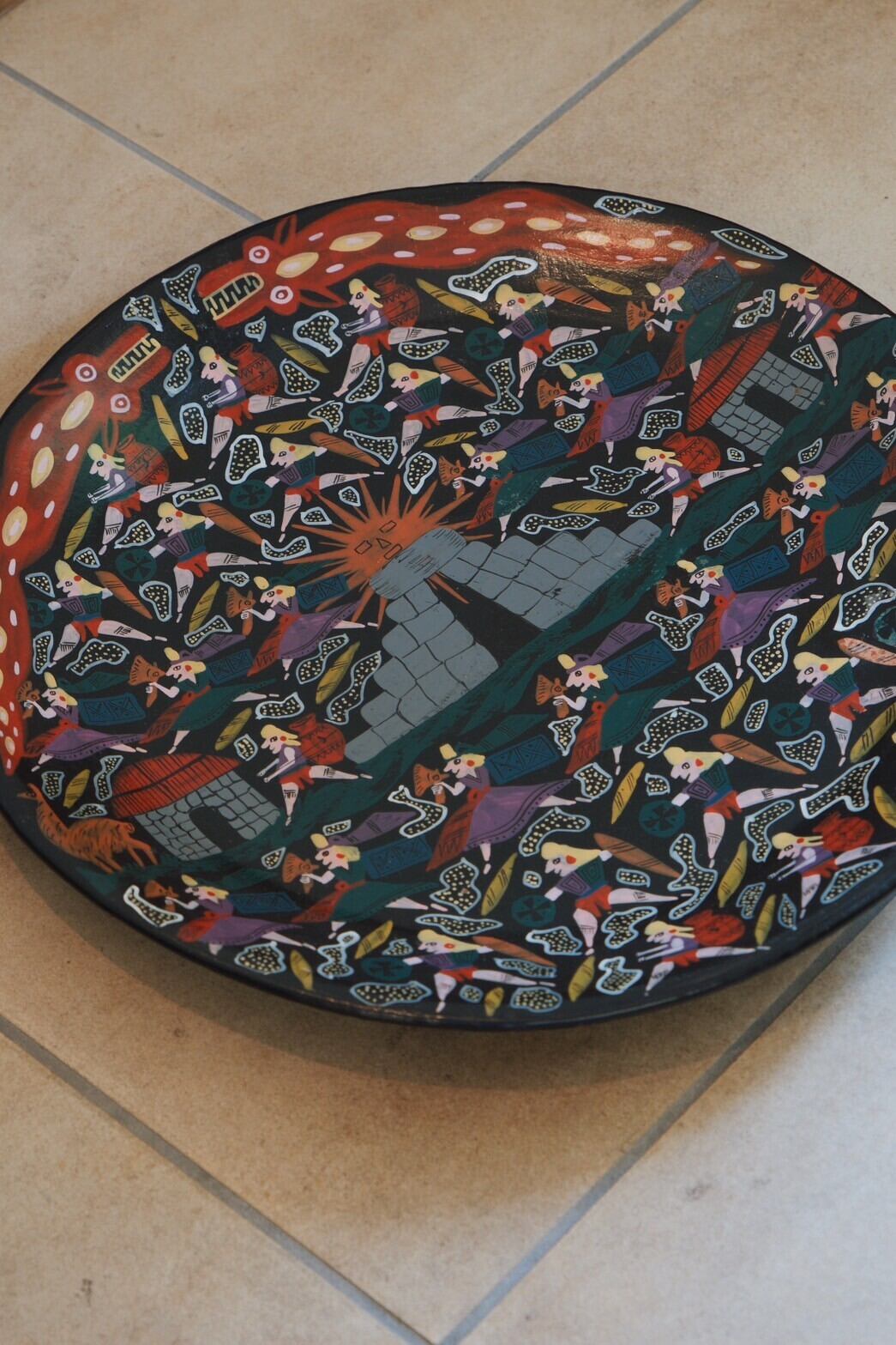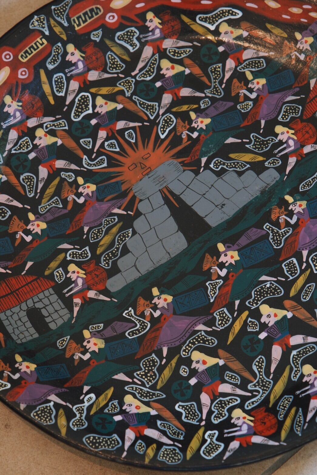 ペルーの国宝 チュルカナス陶器(ホワイト)と同じ形、素材のようなのですがサインなどは特になく謎があるブラック!イラストがかわいくお気に入りです!