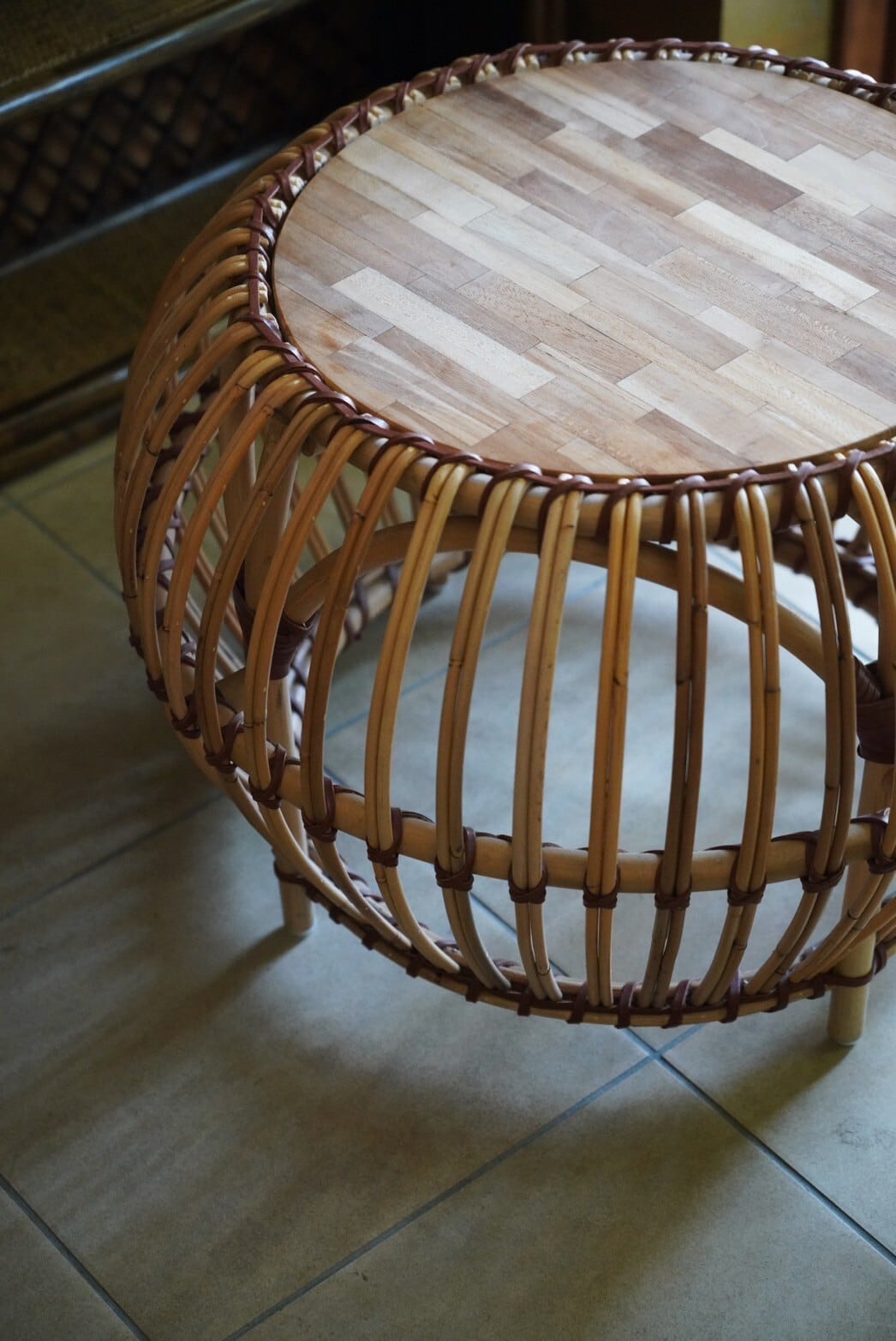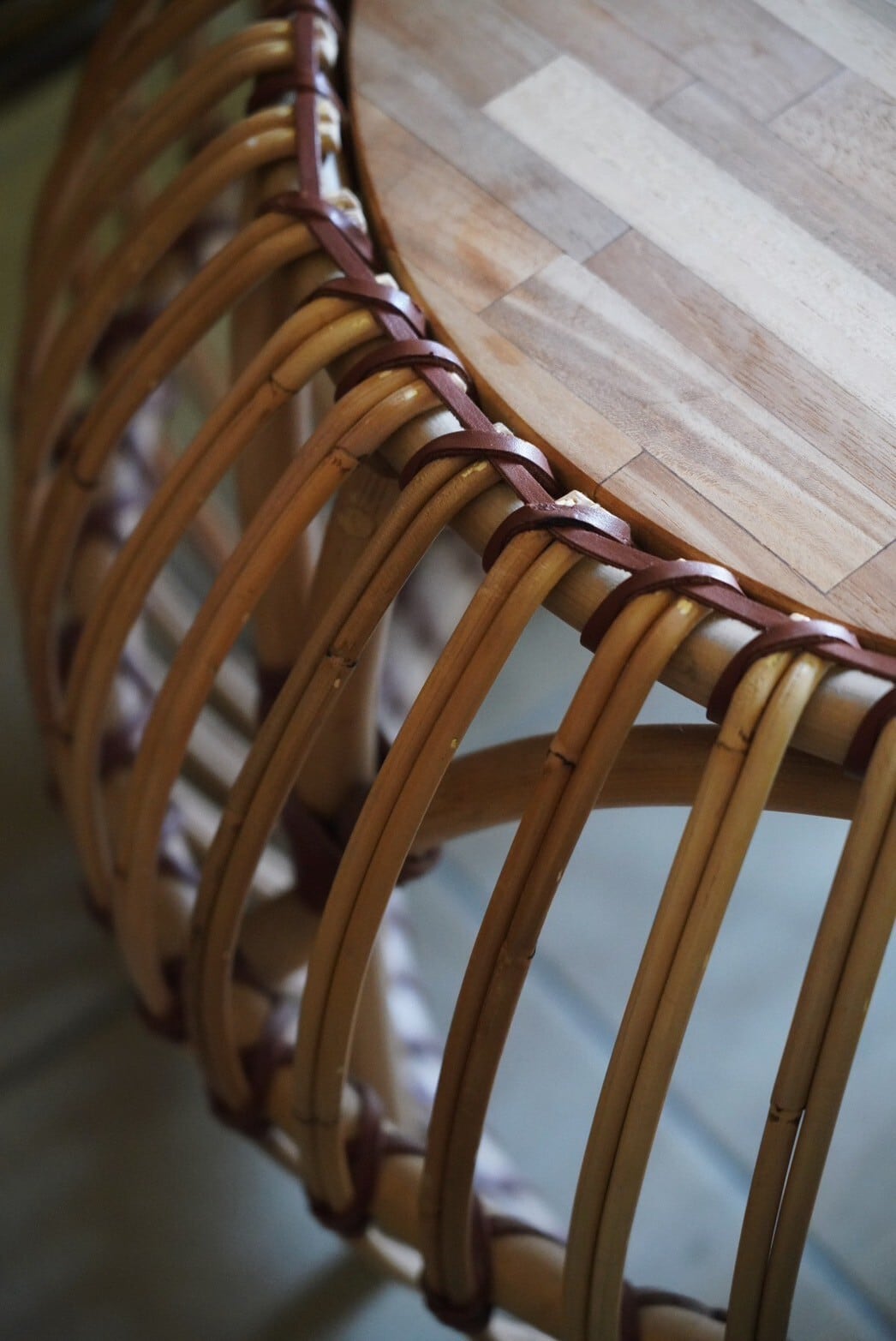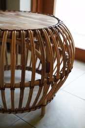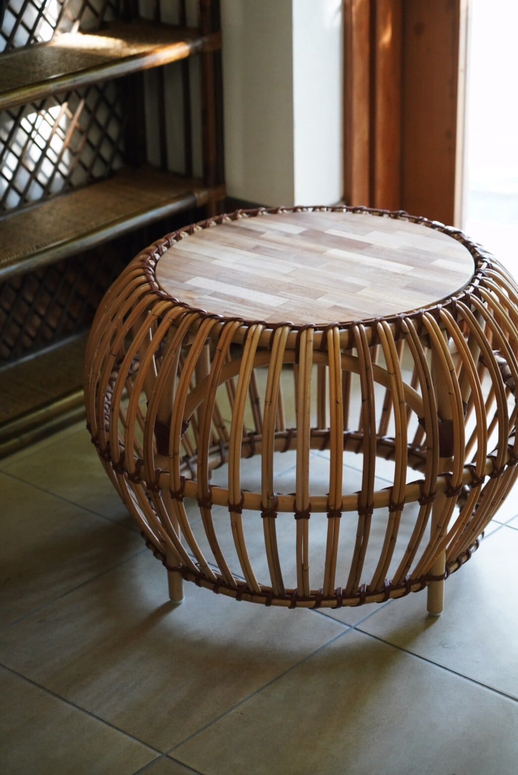 まぁるいラタンのフォルムとウッドの組み合わせがかわいいサイドテーブル