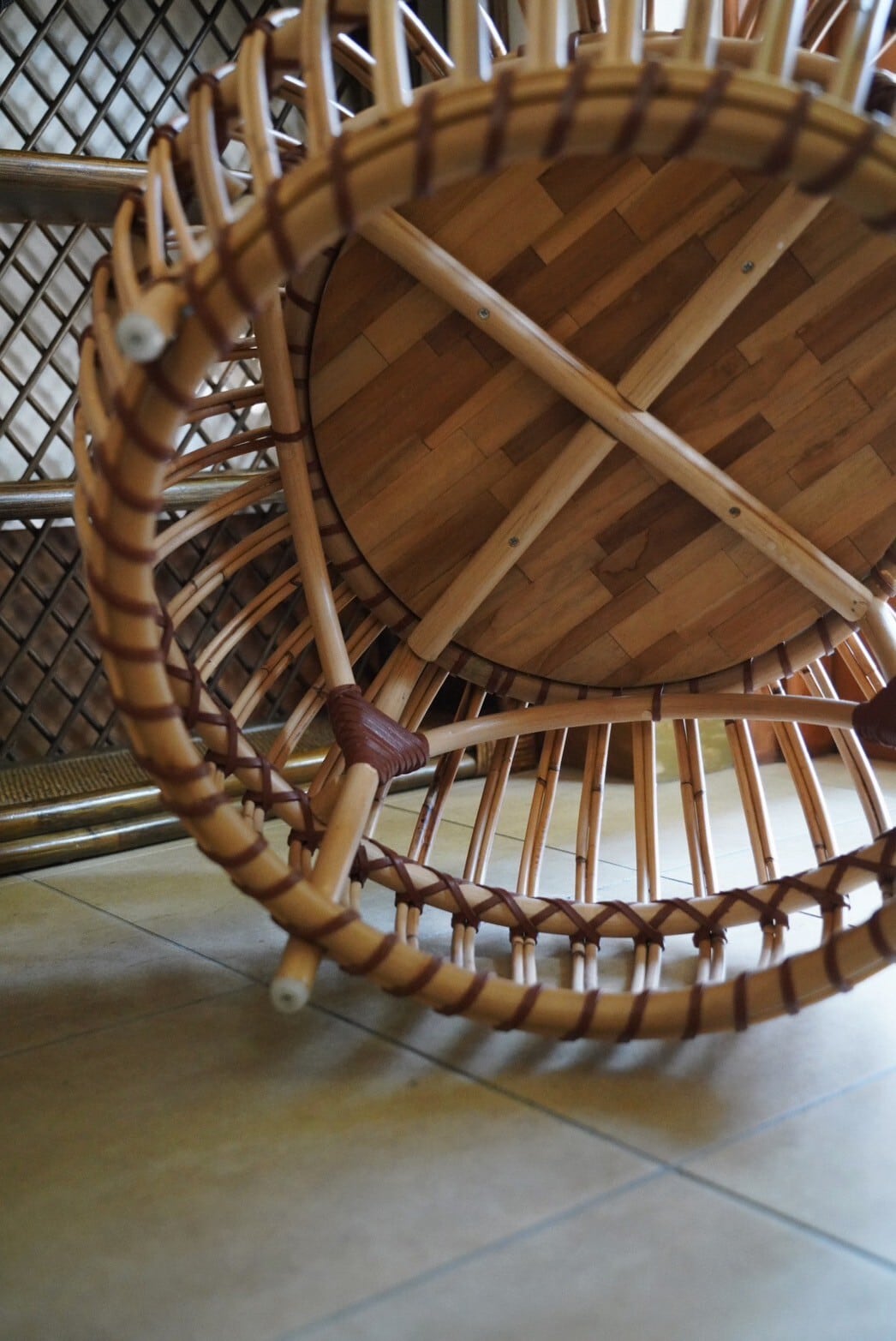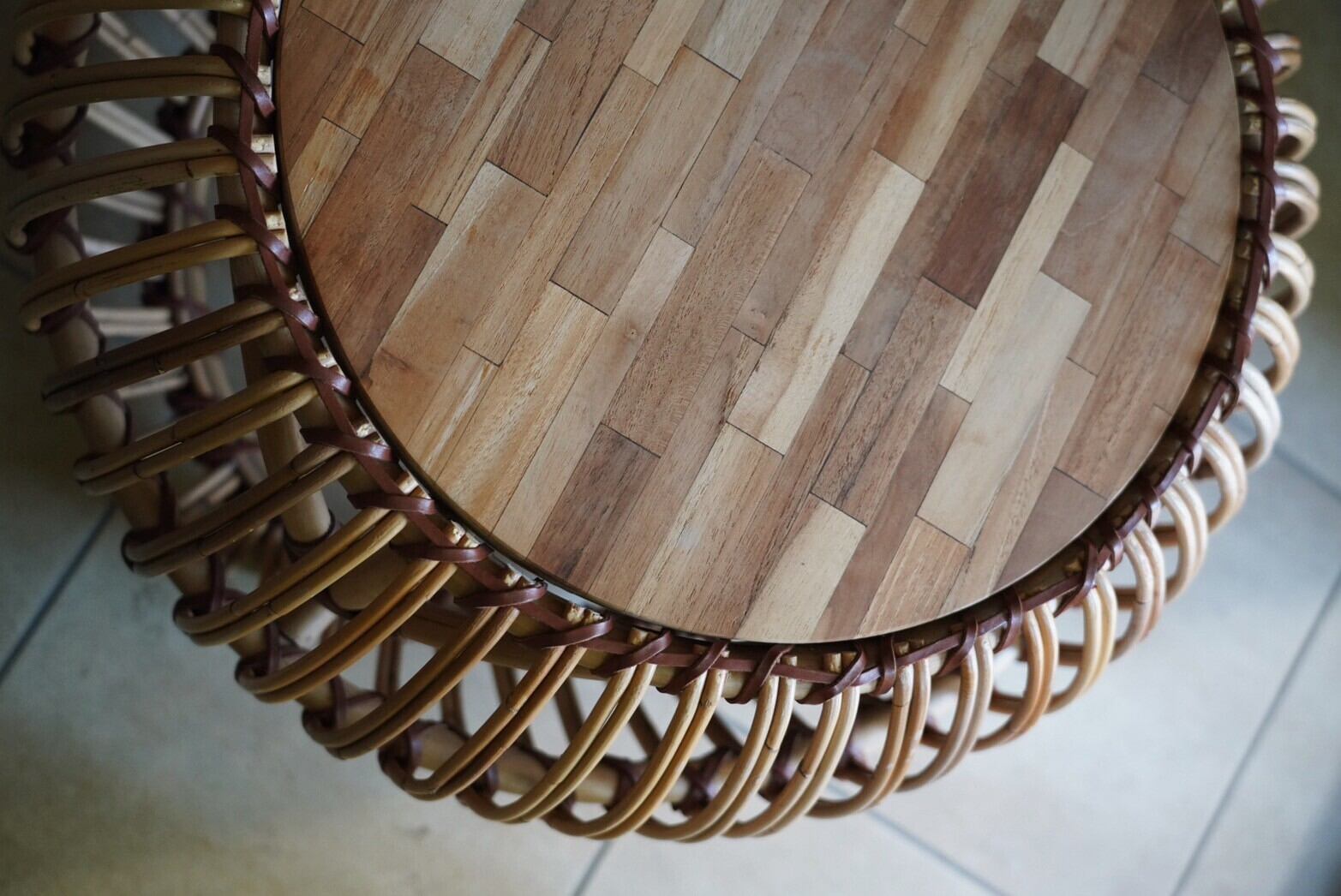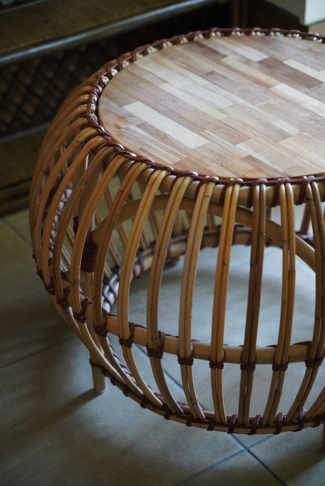 まぁるいラタンのフォルムとウッドの組み合わせがかわいいサイドテーブル