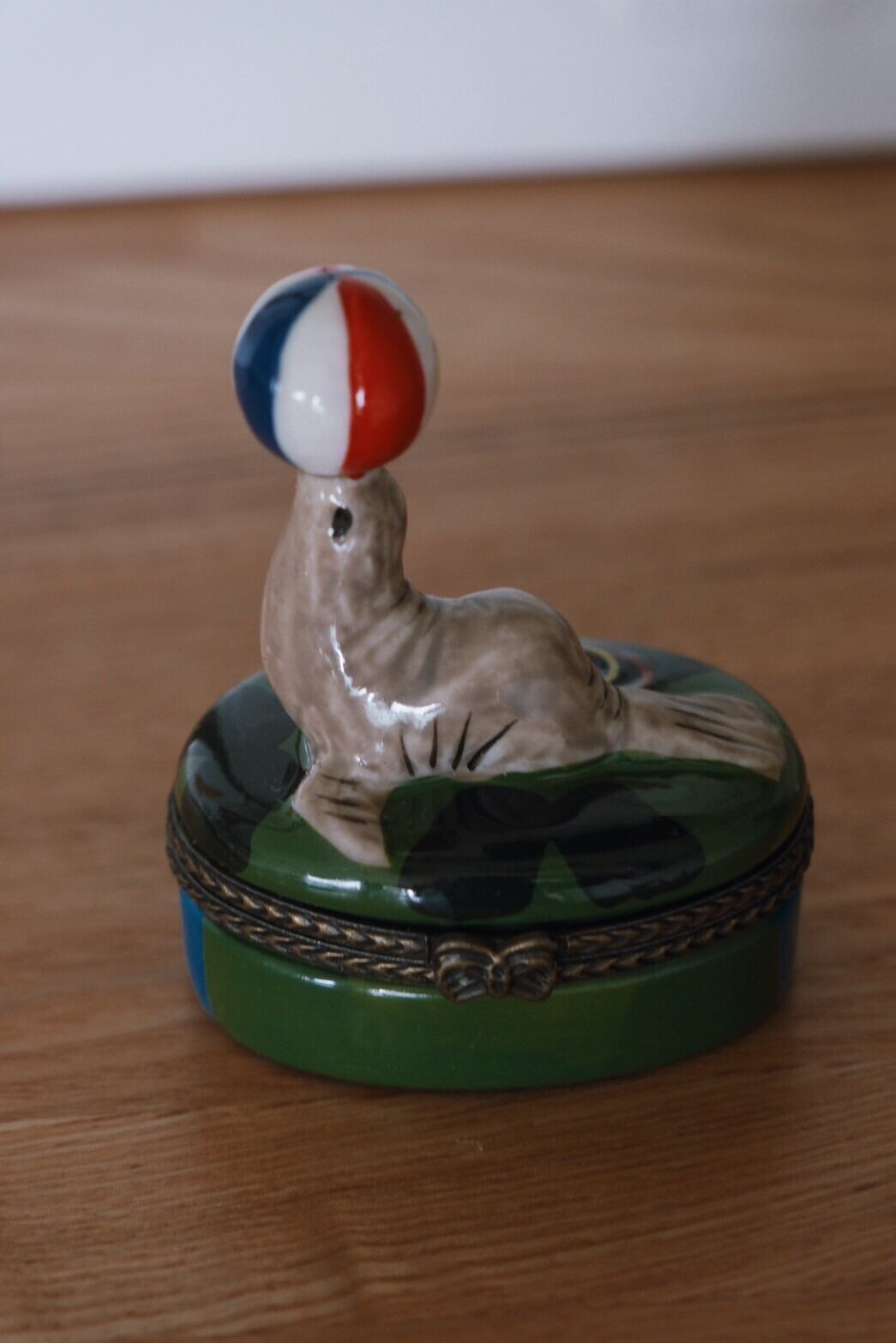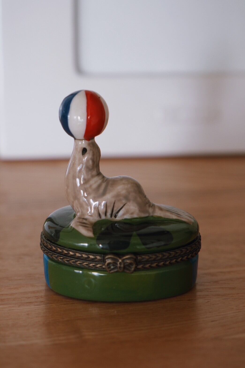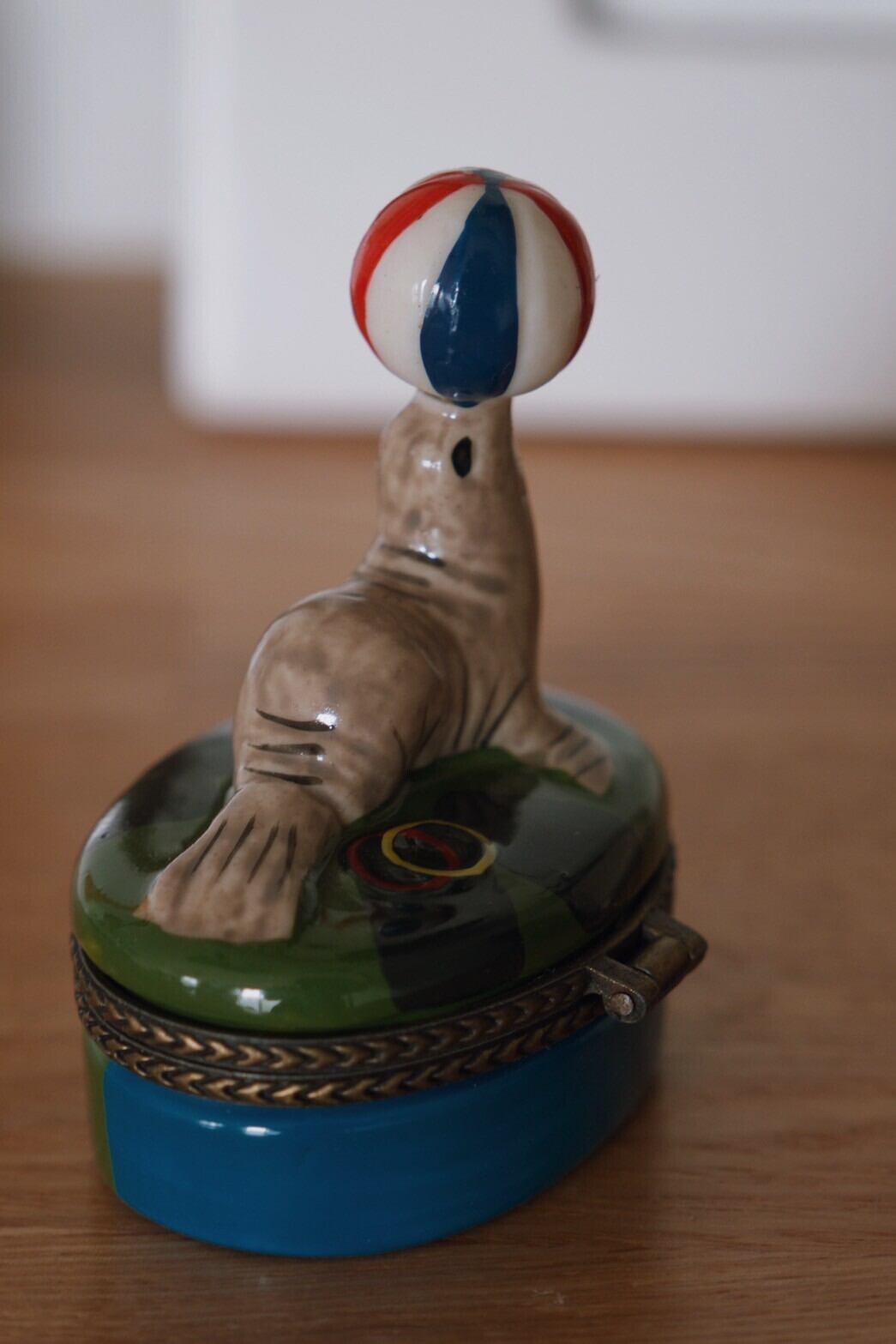 ボールで得意げに遊ぶアシカのジュエリーボックスです!