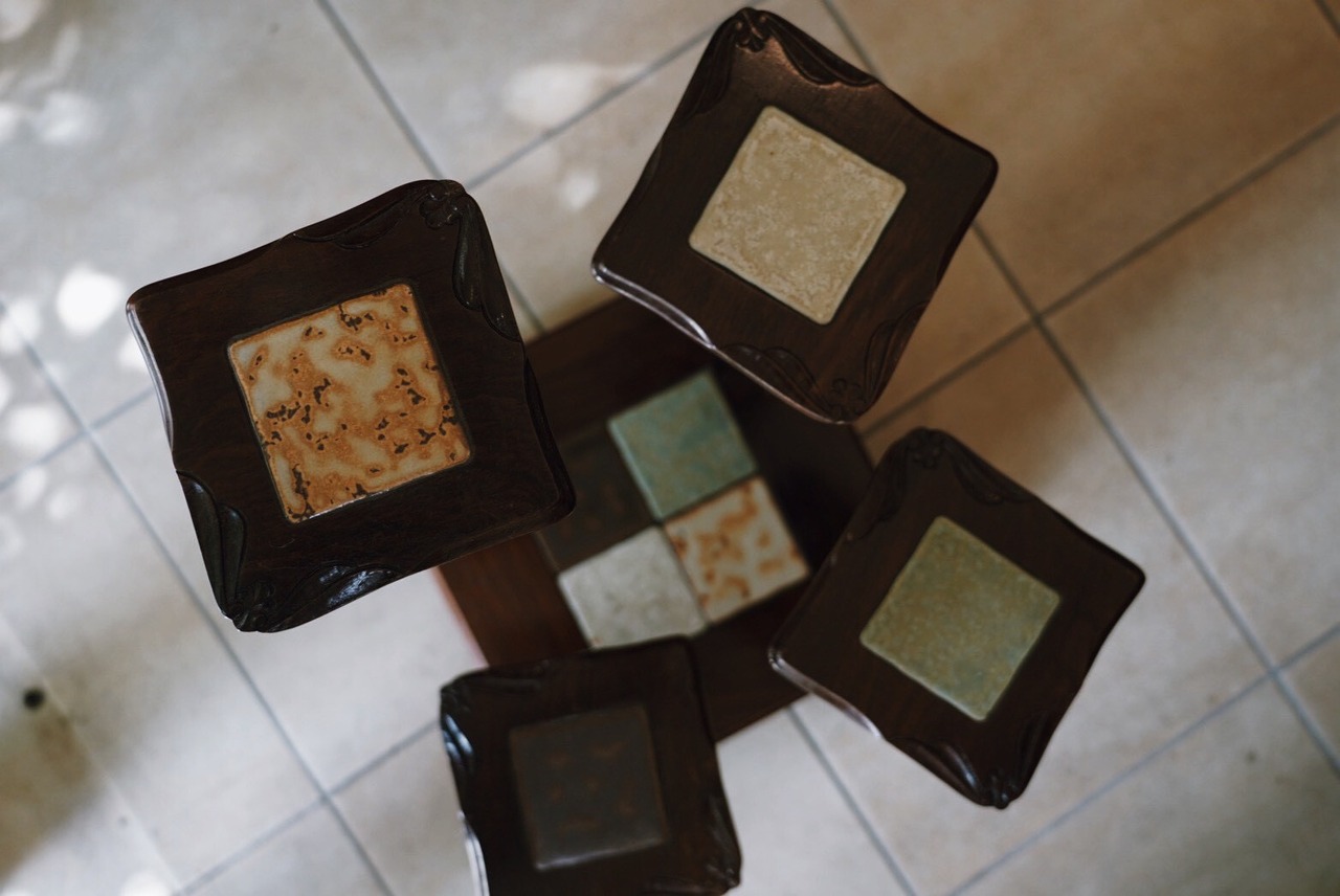 4つの塔それぞれにかわいいタイルがあり