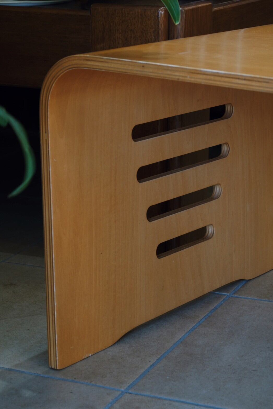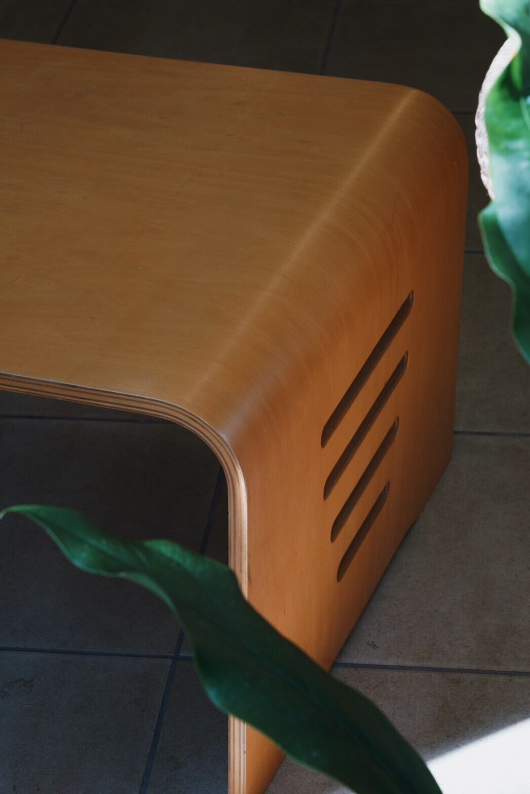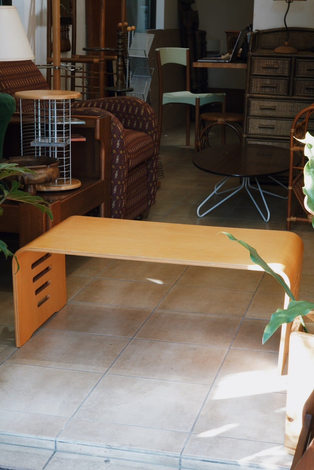 植物好きのお部屋に似合いそうな曲線がかわいいプライウッドのローテーブルを発見♪