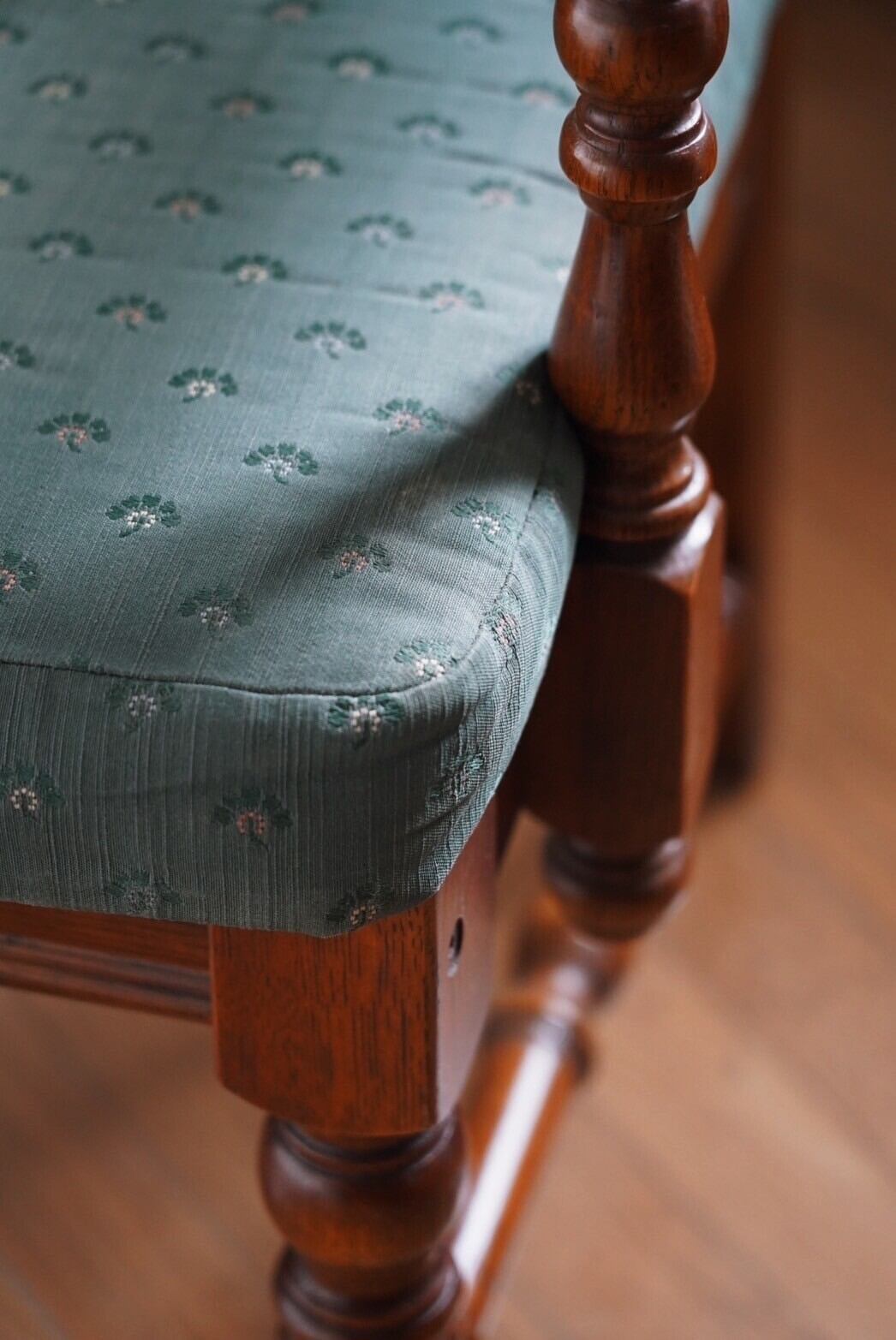落ち着いたブラウンとグリーンがアクセントのオールドマルニチェア