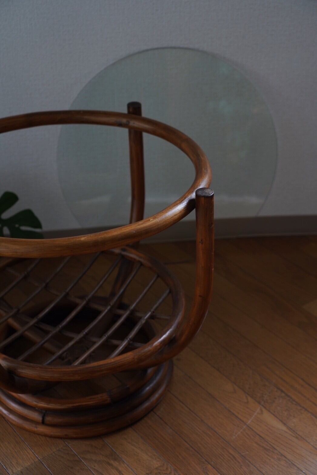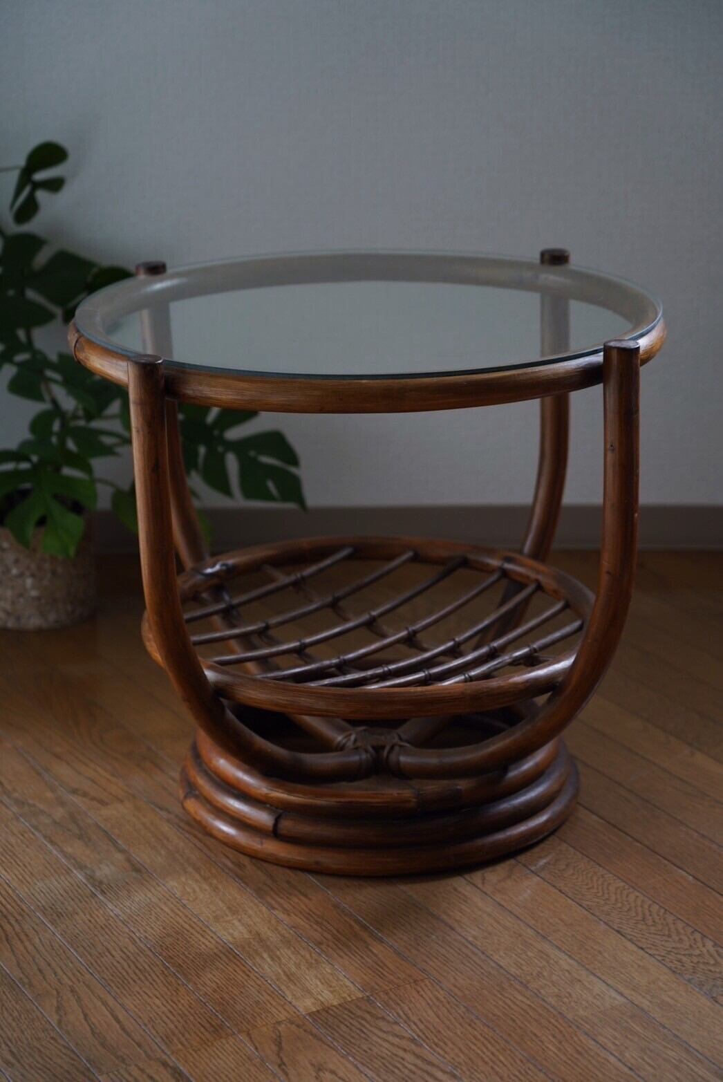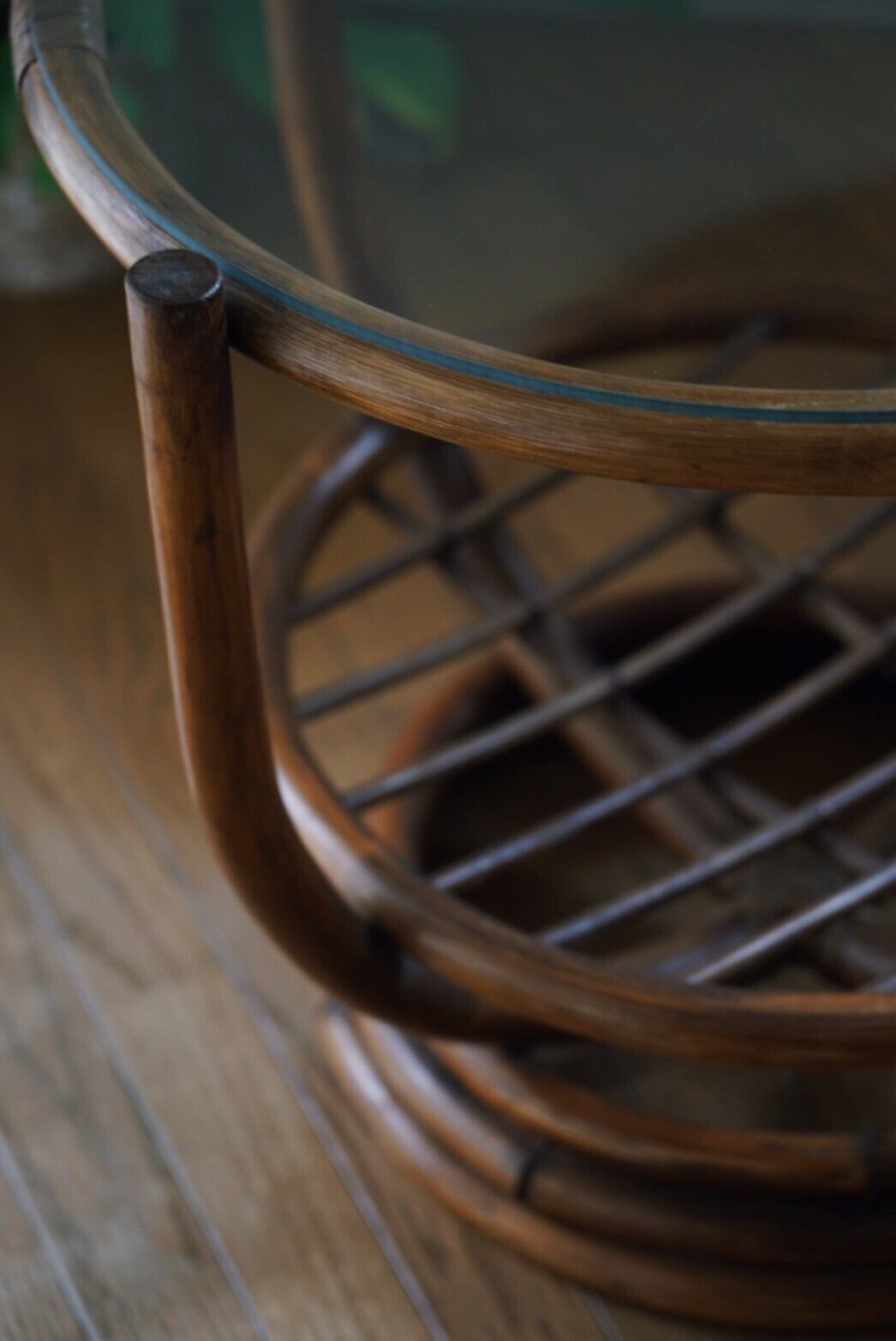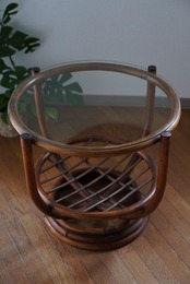ガラス天板のラタンテーブル