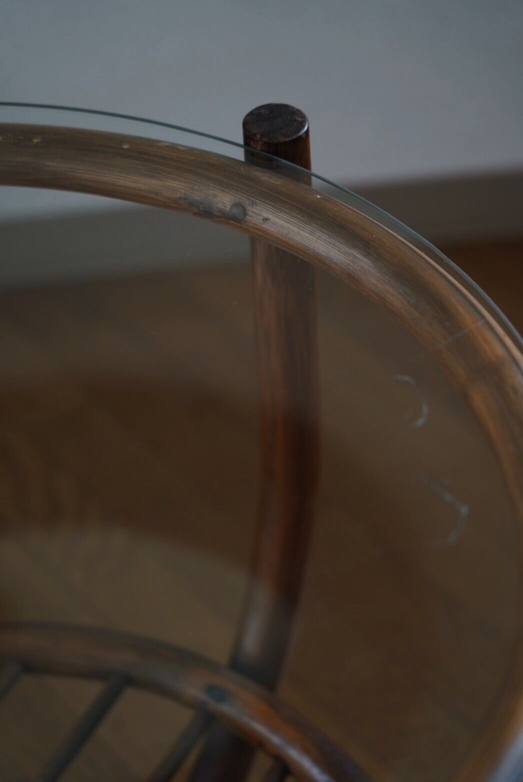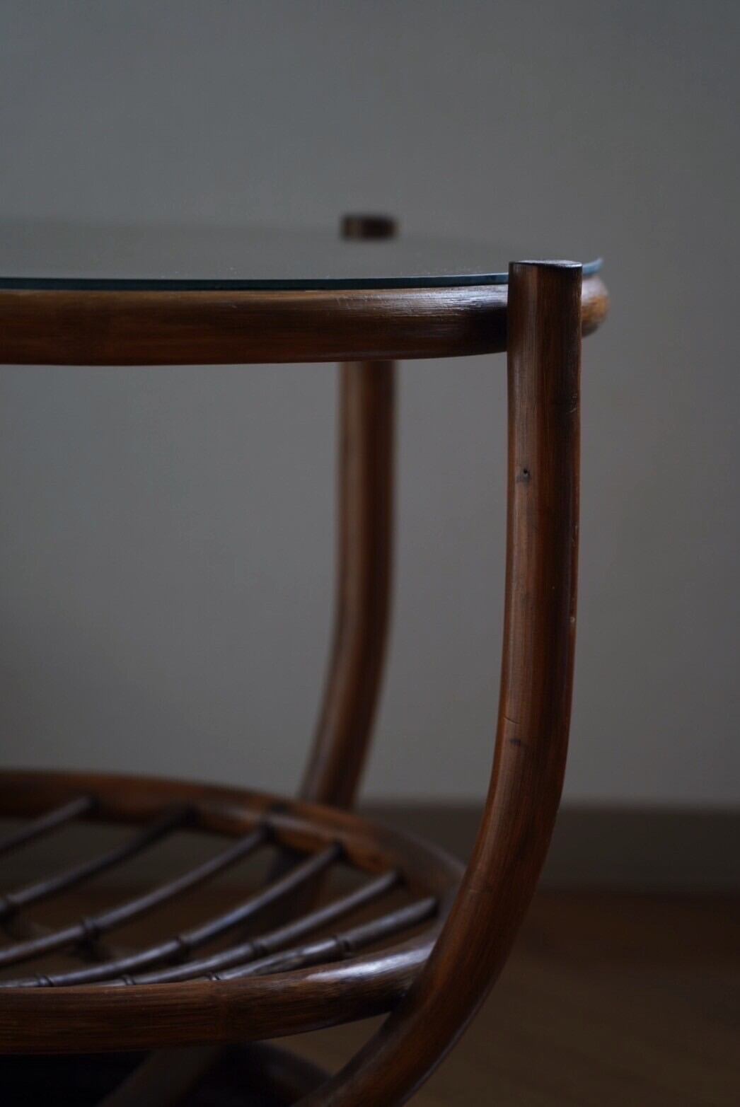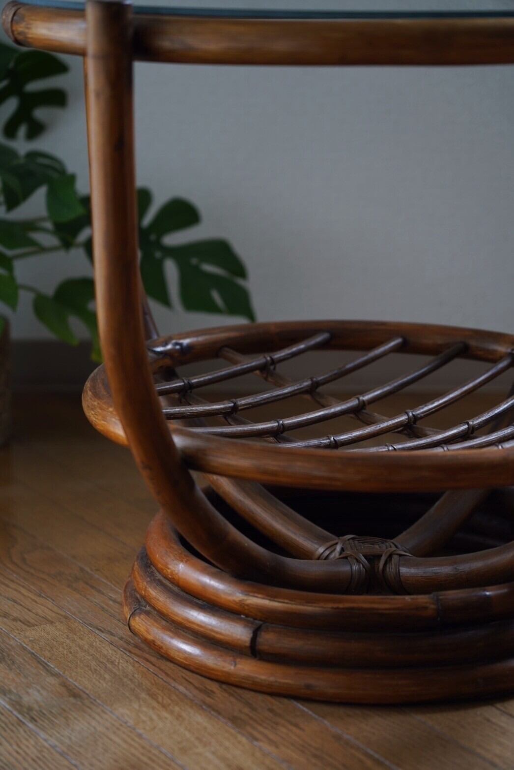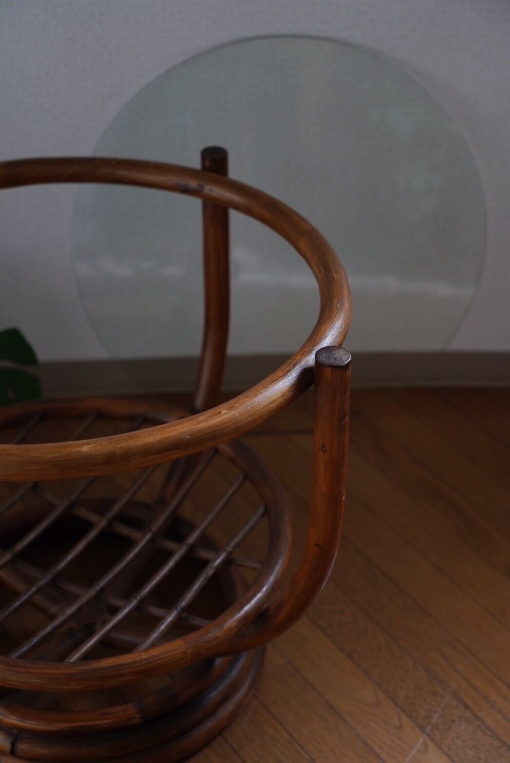 ガラス天板のラタンテーブル