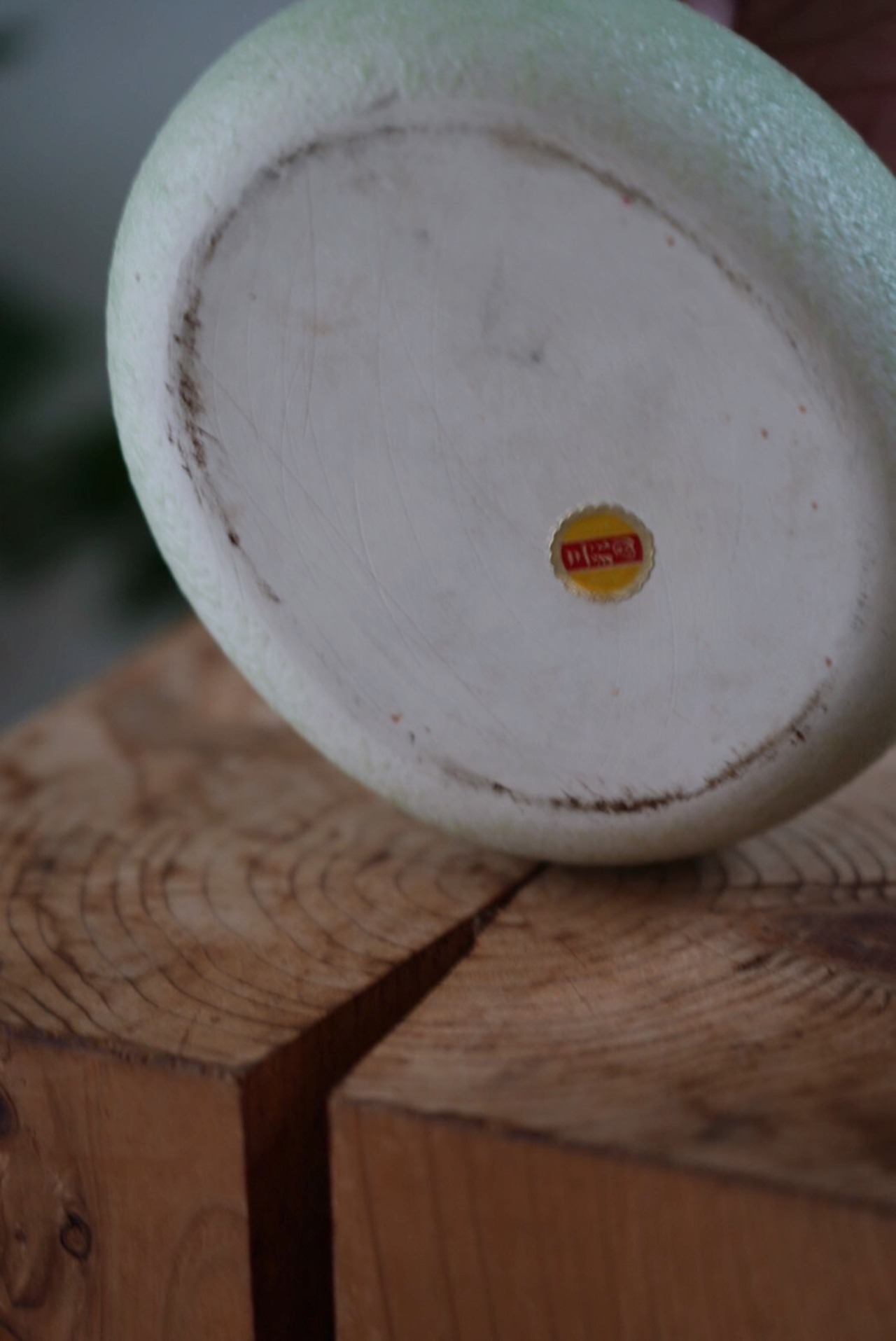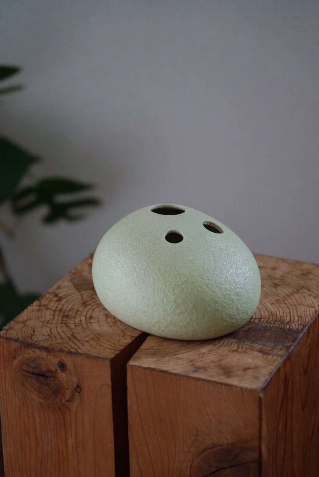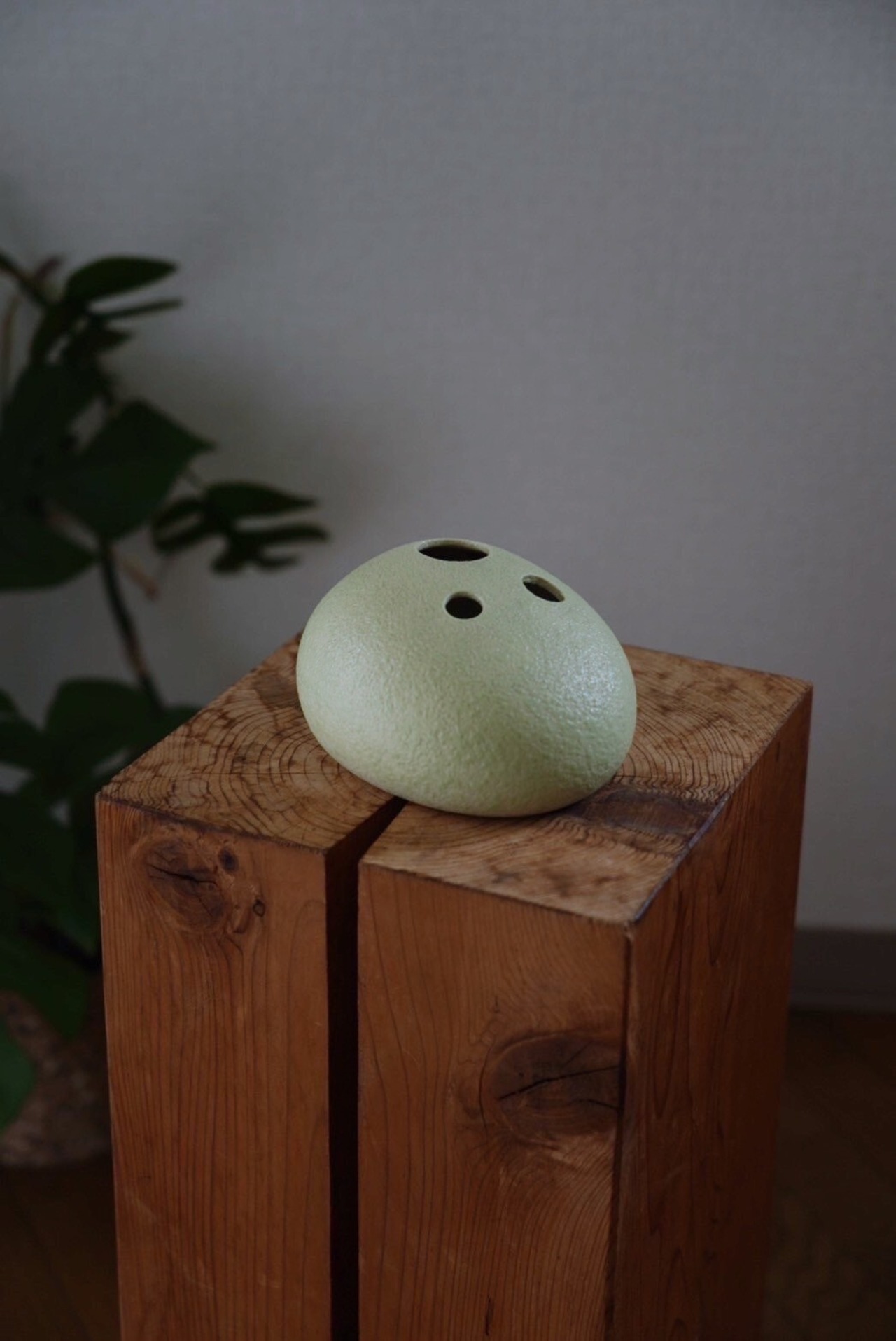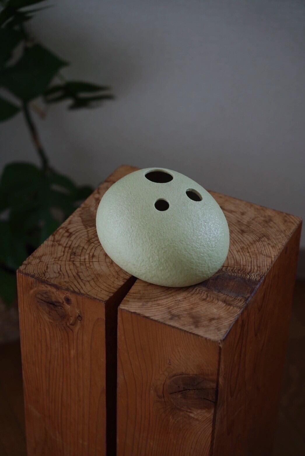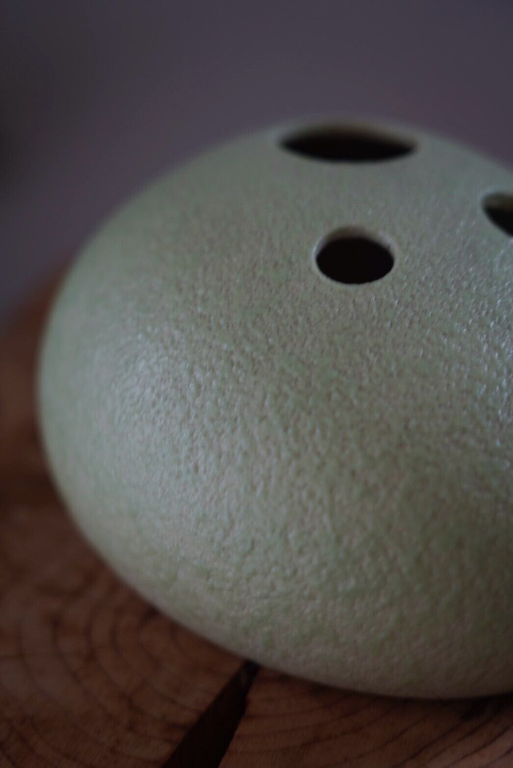 綺麗な丸みと絶妙なカラーのグリーンと3つの穴がずっとみていると顔のように見えてきます