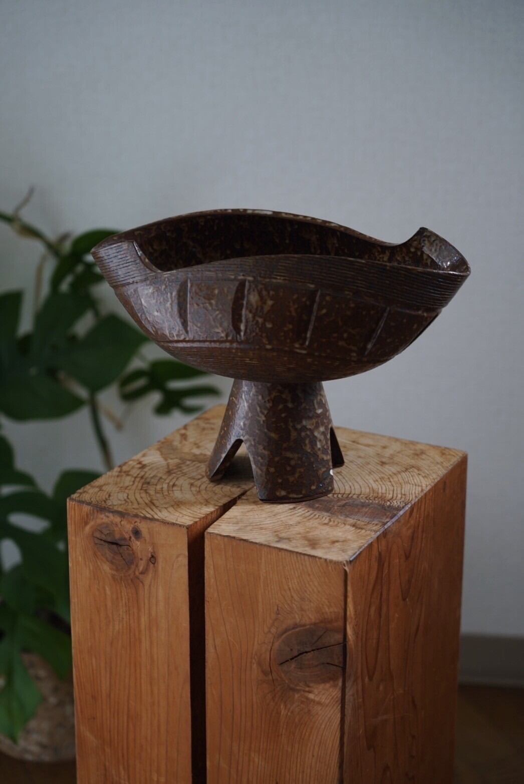 日本の美しい形の花器です。和モダンスタイルを彷彿とさせ、アンバランスで唯一無二なデザインが魅力的な1点。単体のオブジェとしても一際目を惹きます。