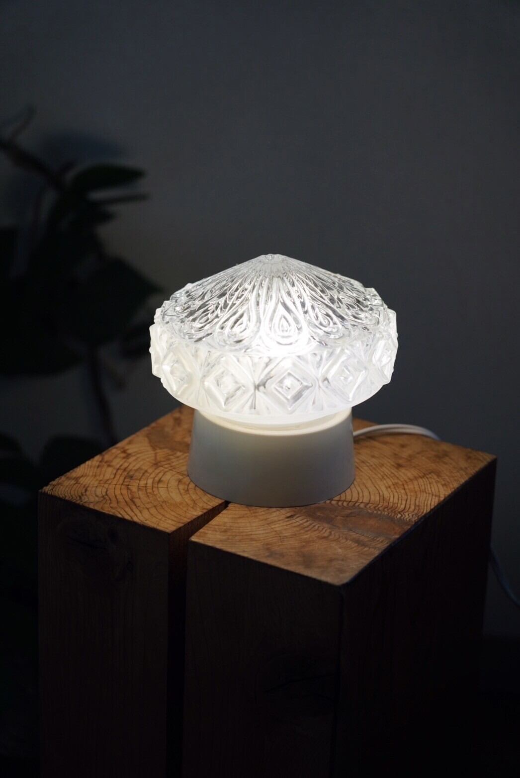 おそらく 1950 年代から 1970 年代にかけて作られた、インダストリアルパターンのテーブルランプです。