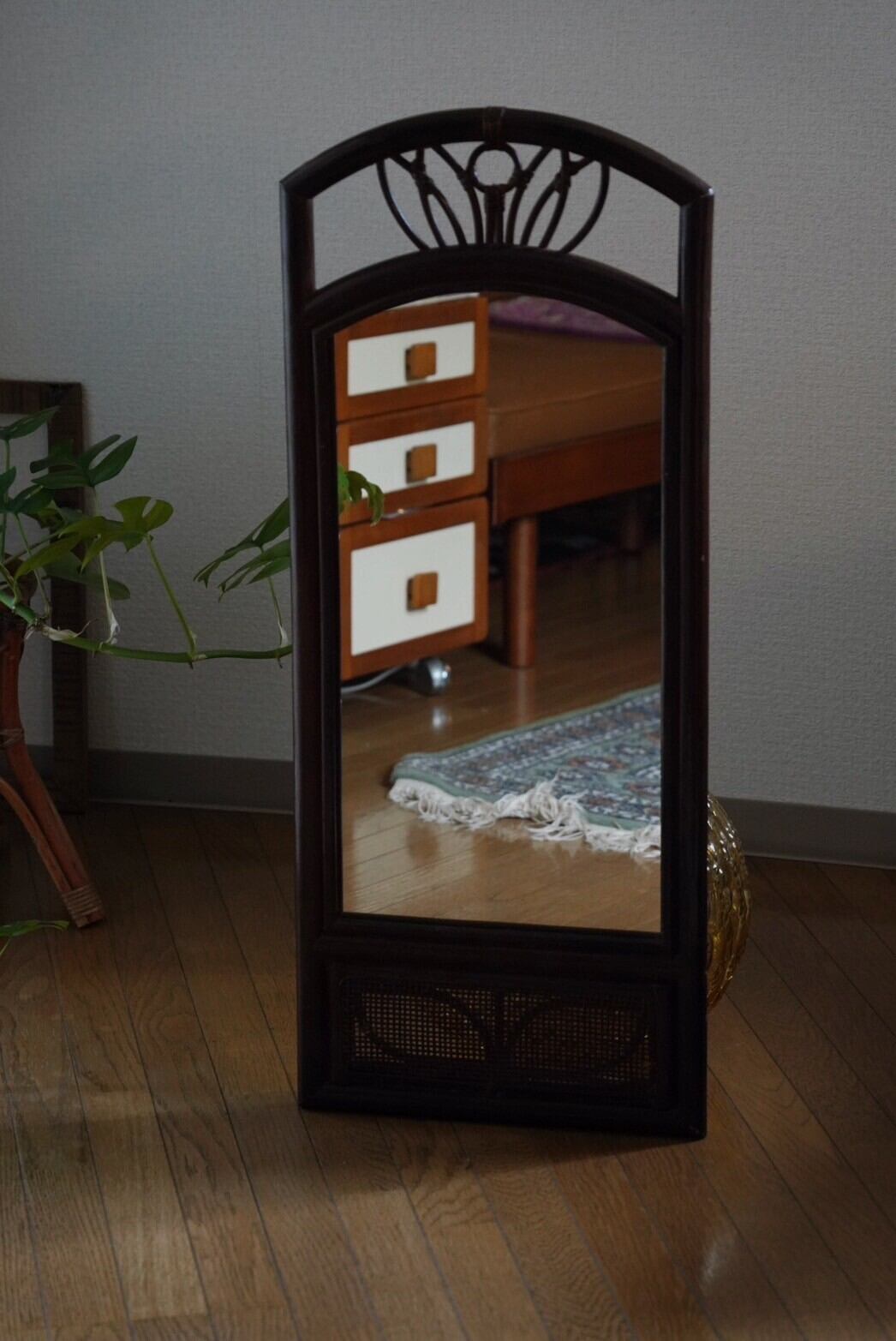 一つあるだけでアクセントになるラタンの家具ミラー!