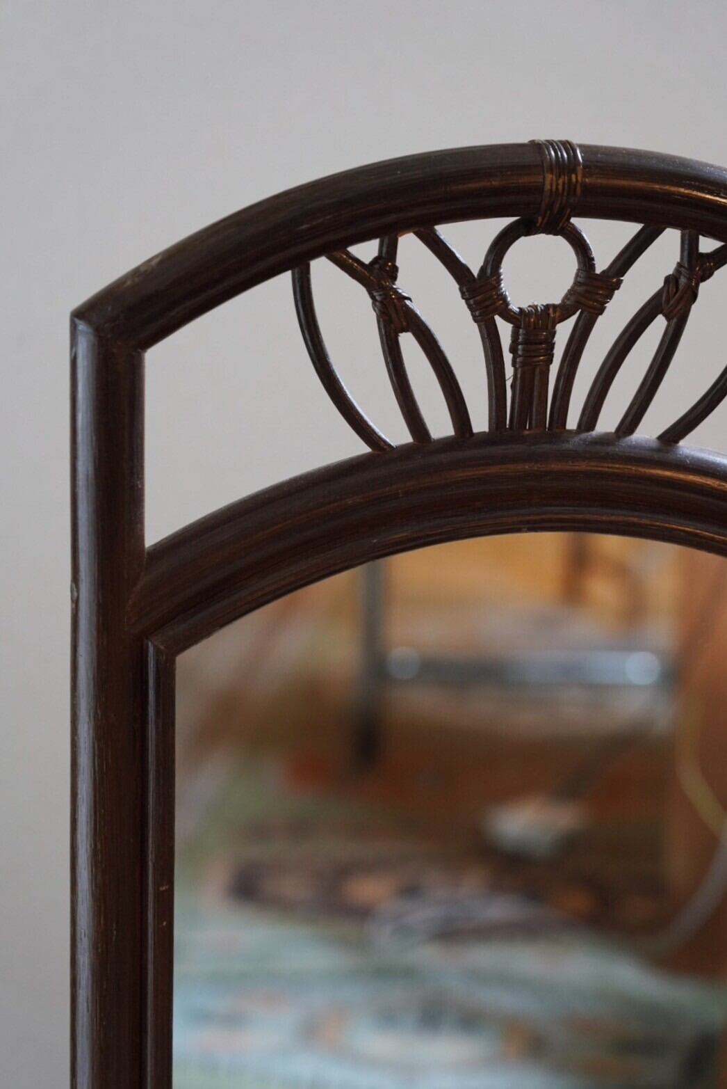 ラタンの鏡は壁もおしゃれにしてくれるのでとてもテンションが上がる鏡です!
