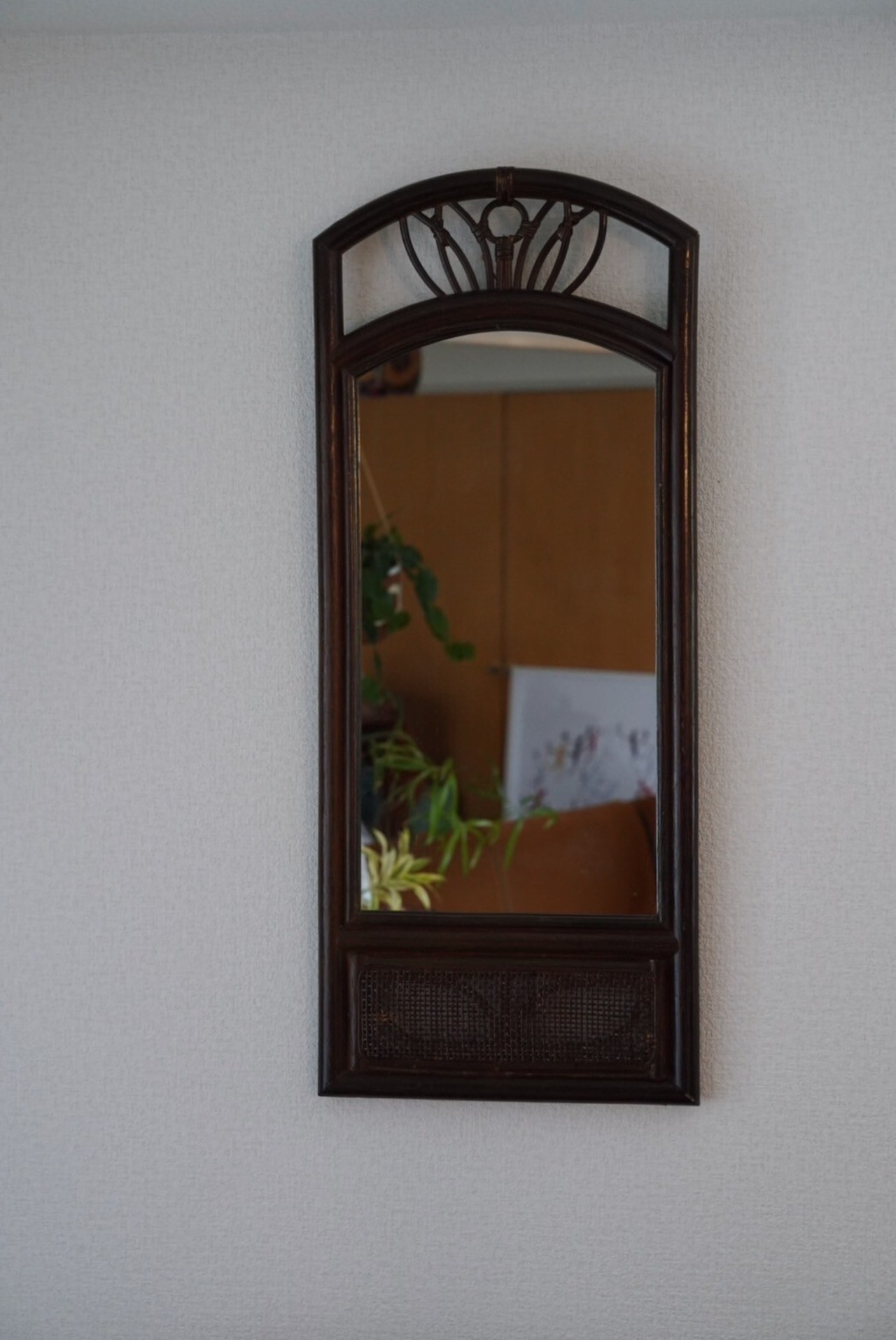 落ち着きのあるラタンの鏡