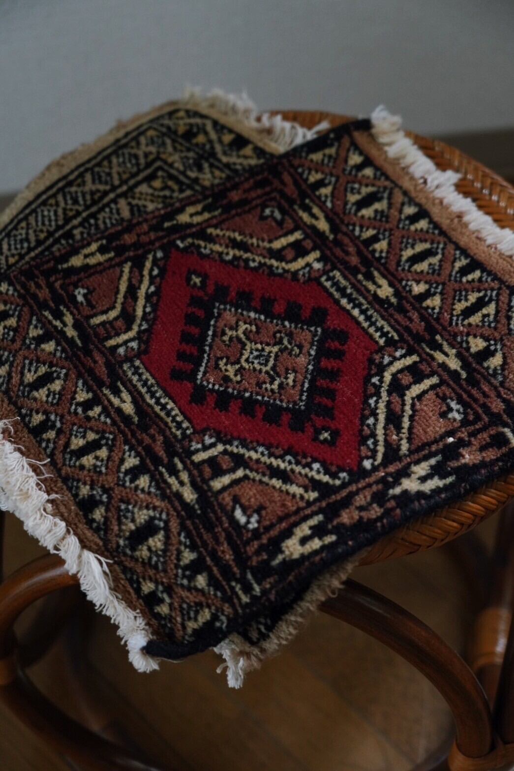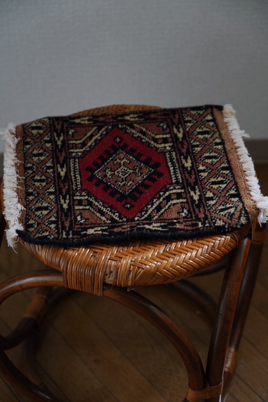 小さめのラグは壁に飾っても、椅子に敷いても、棚やスツールの上に置いても使い勝手が◎