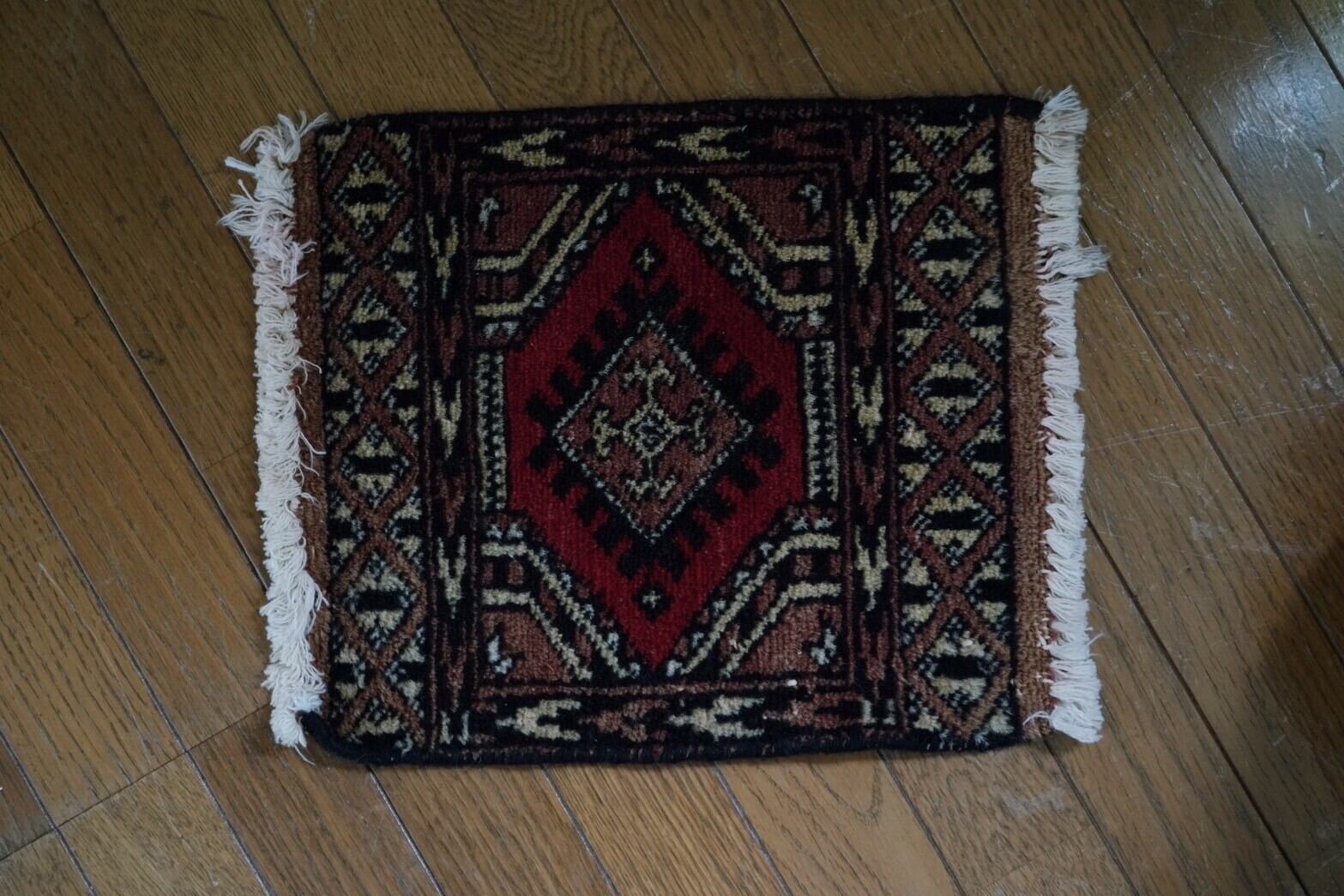 赤とブラウンが多めのミニトライバルラグ(バルーチ)