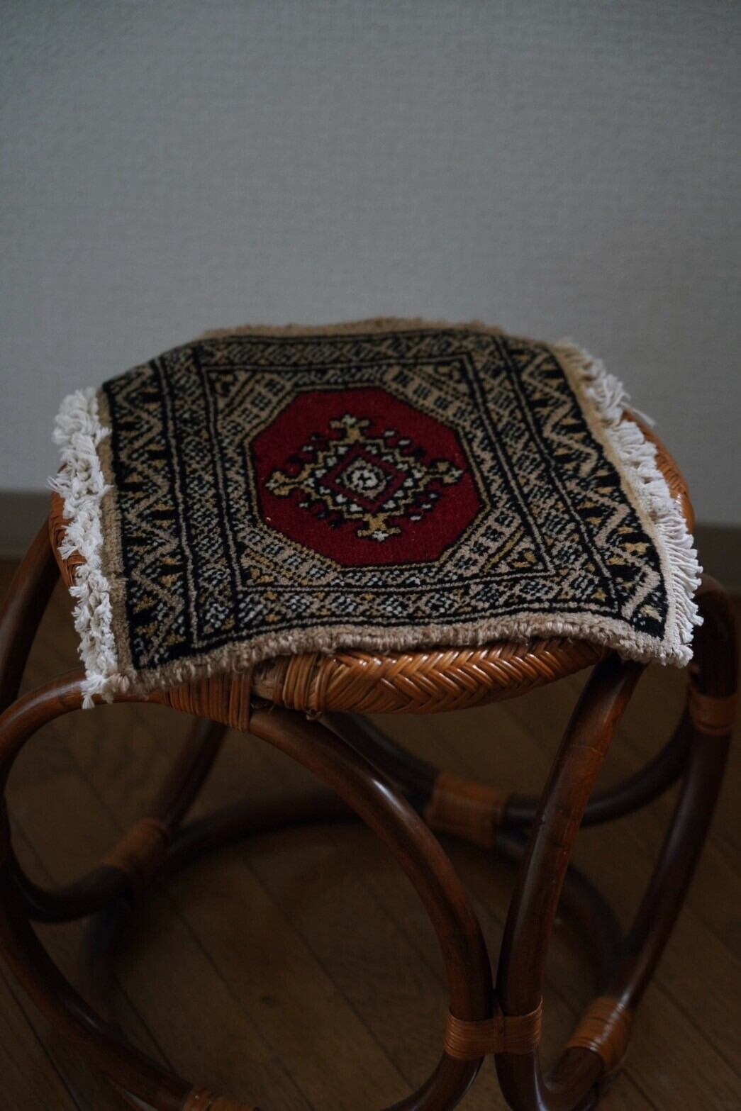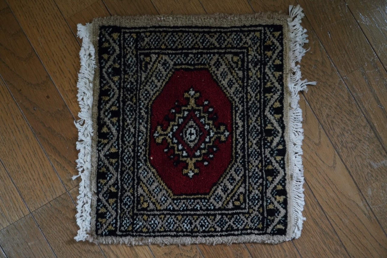 小さめのラグは壁に飾っても、椅子に敷いても、棚やスツールの上に置いても使い勝手が◎