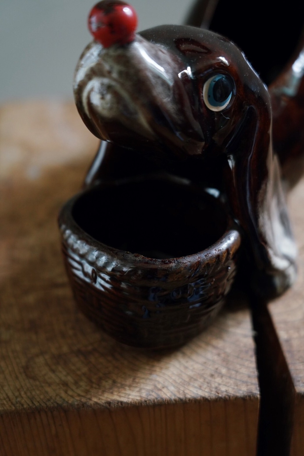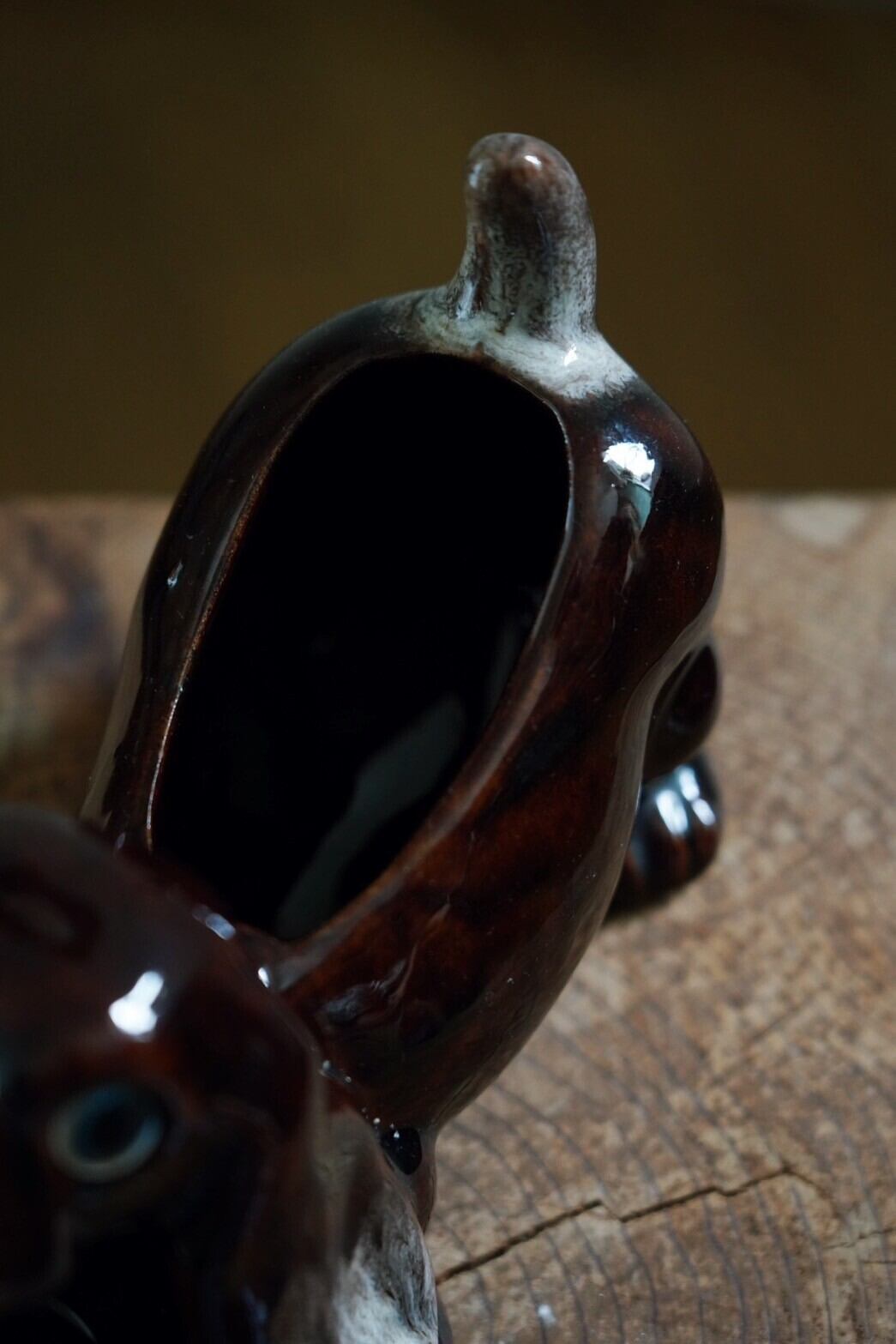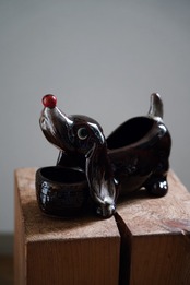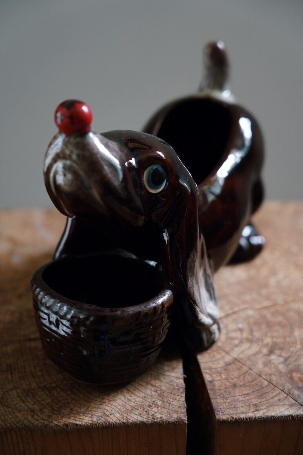 少し擦りむいたまっ赤なお鼻のダックスフンドのヴィンテージフラワースタンド