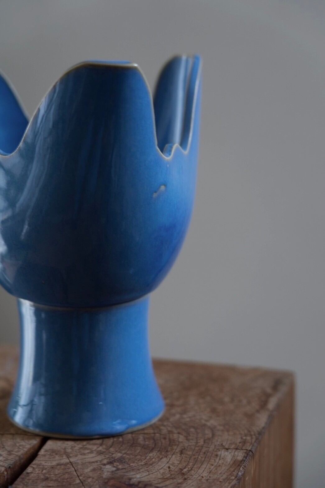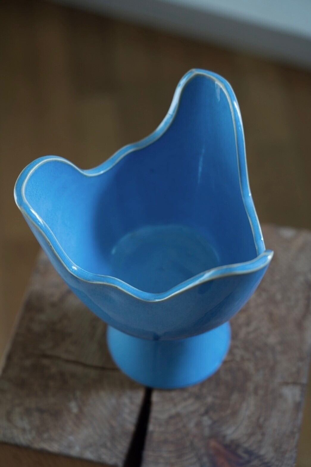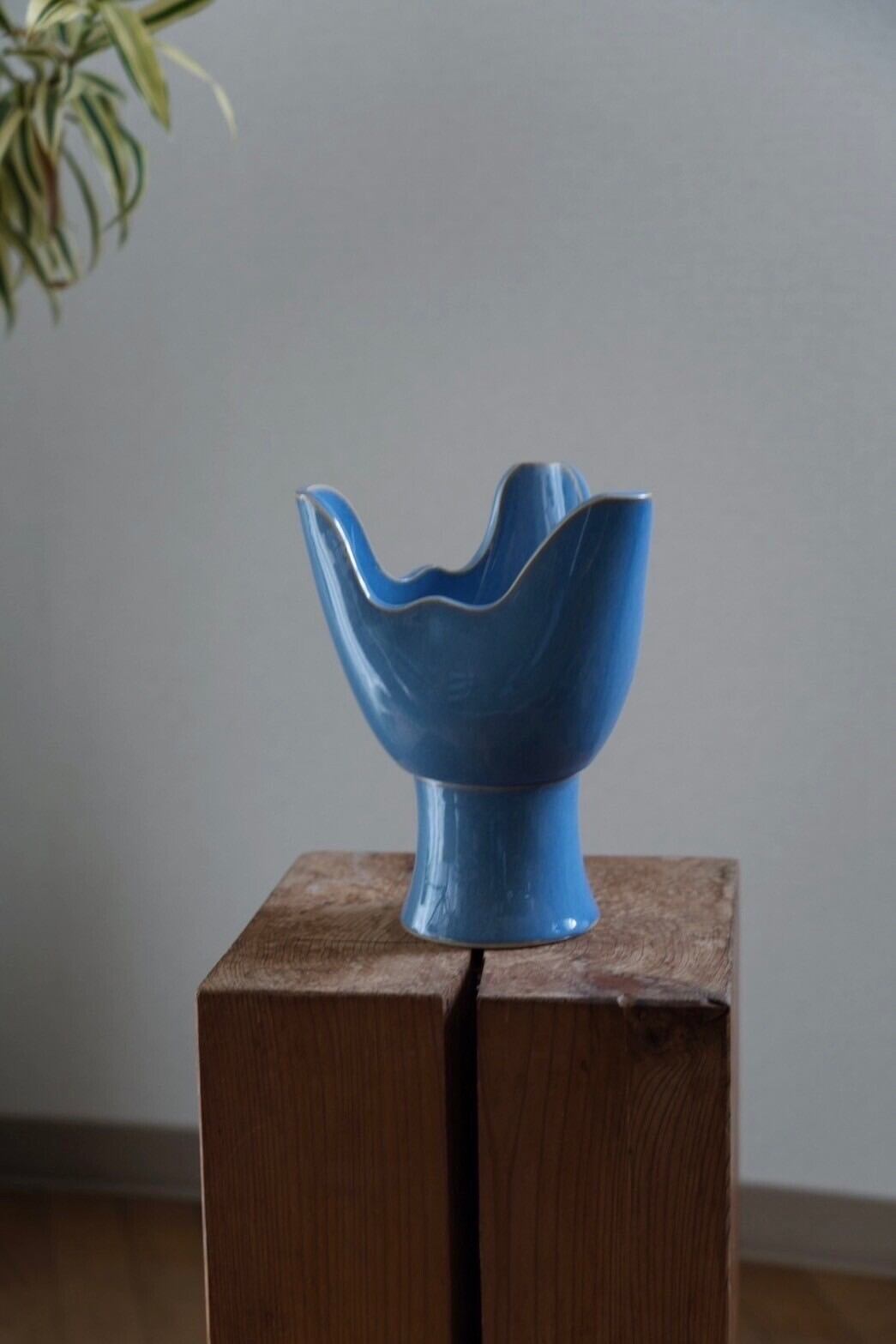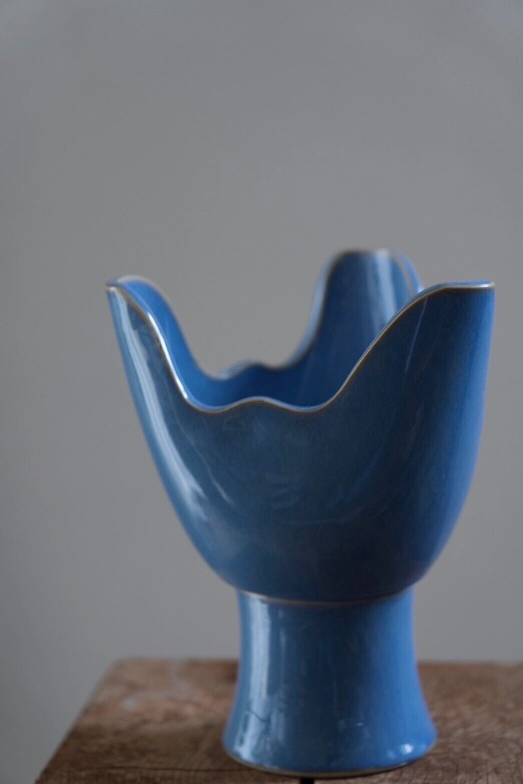 美しい水色のコンポート型花器