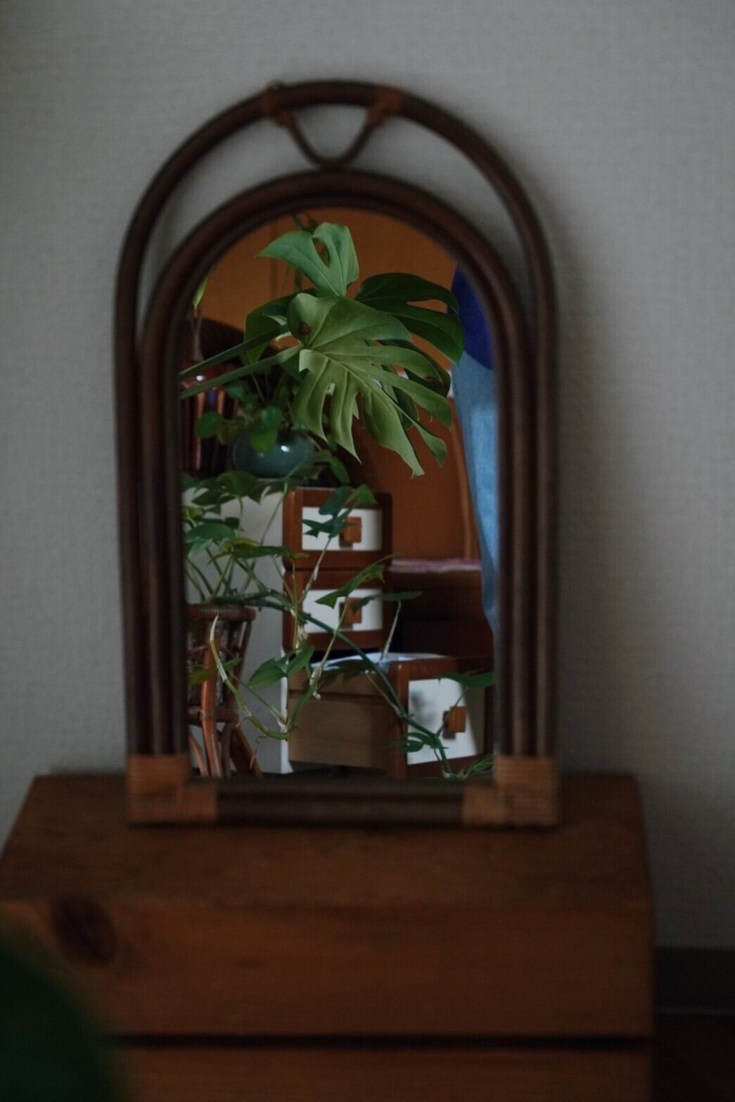 一つあるだけでアクセントになるラタンの家具ミラー!