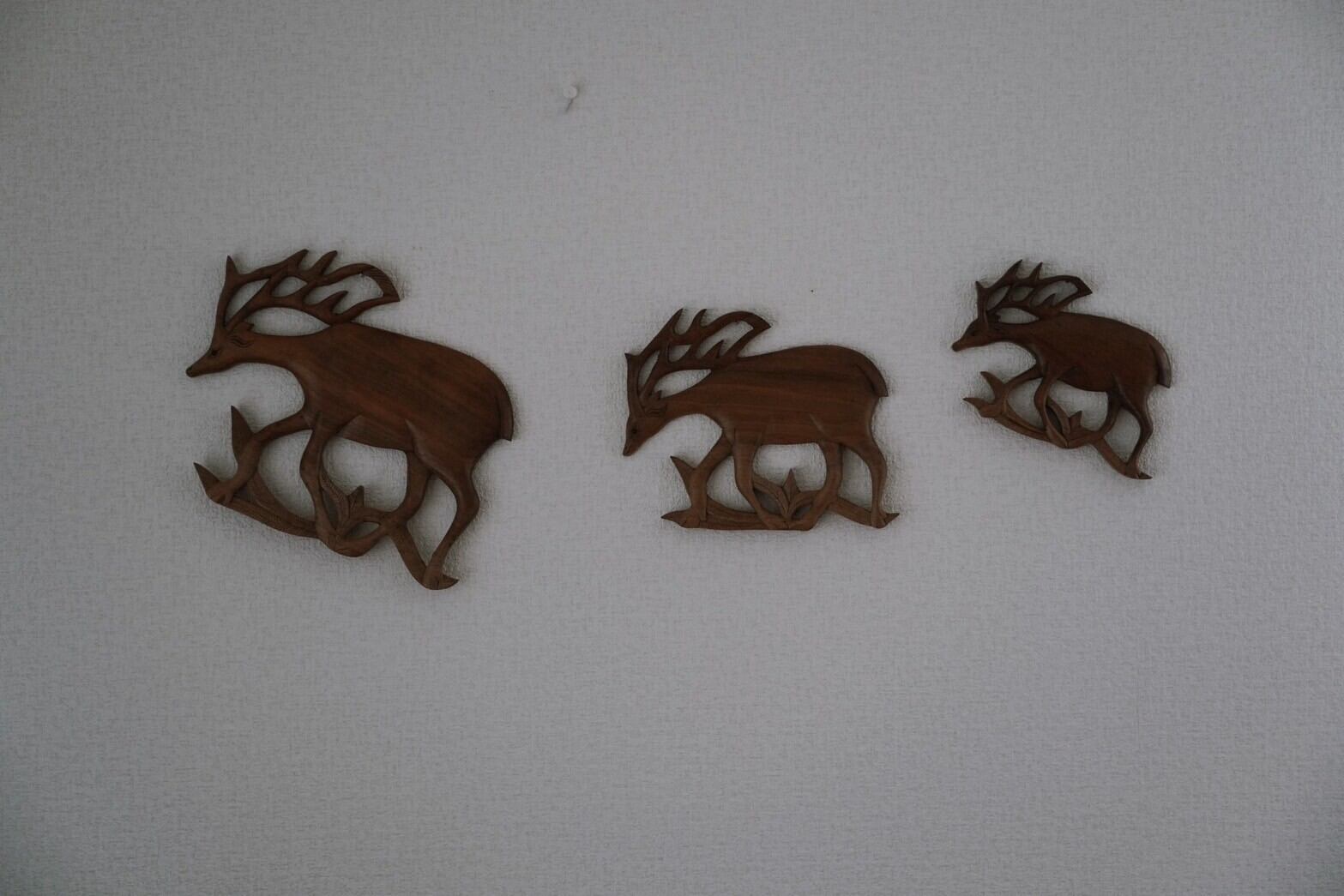 お目めが赤いインドでつくられた壁飾りのカシミールウォルナット