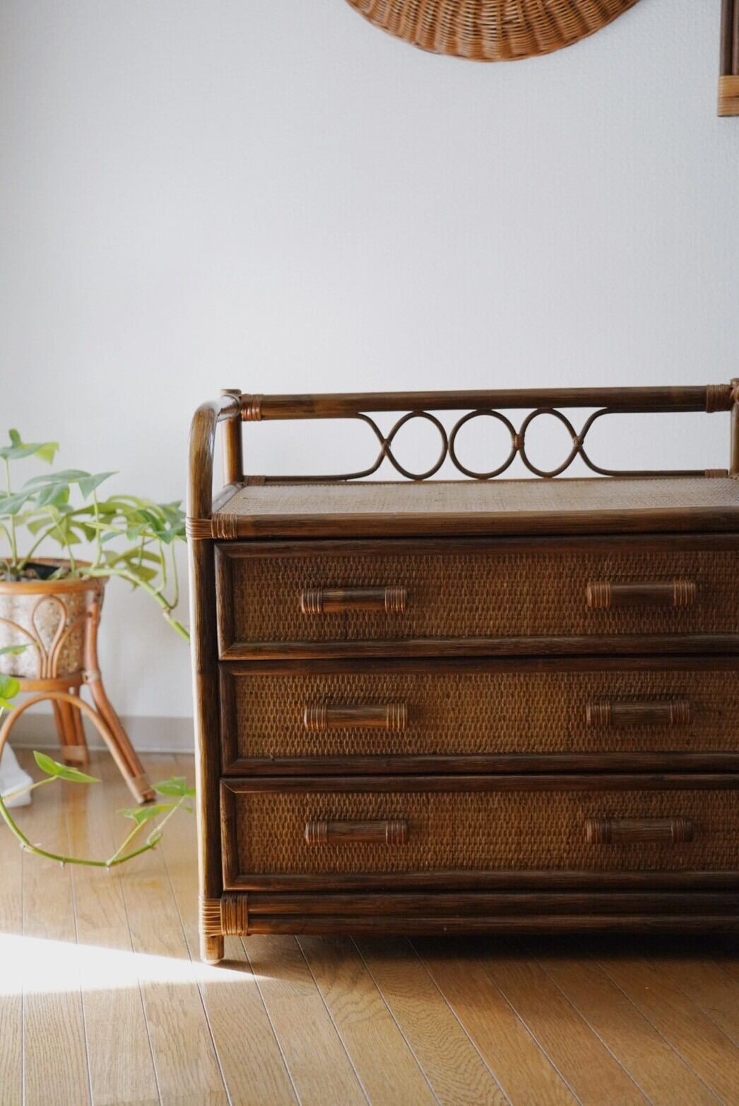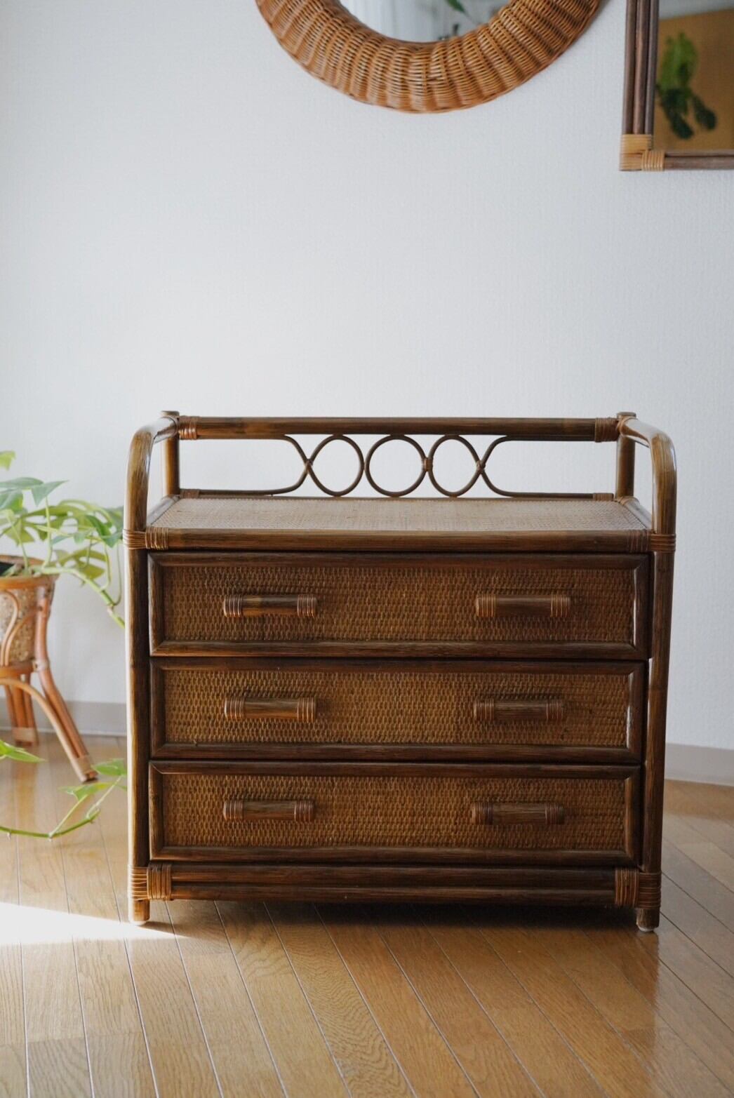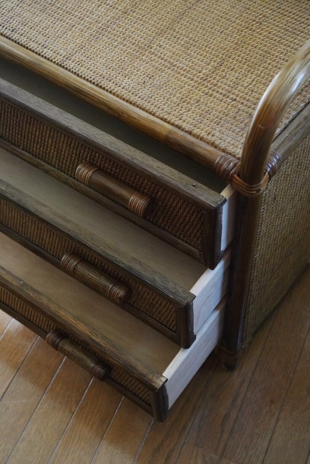 一人暮らしに最適♡ローサイズの3段ラタンチェスト