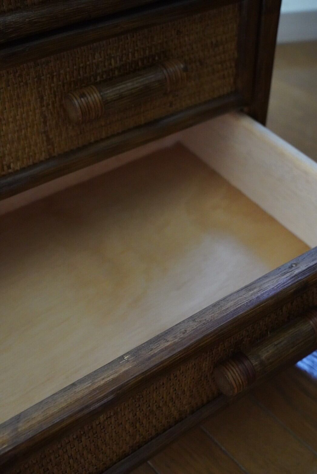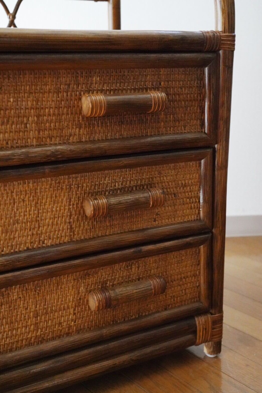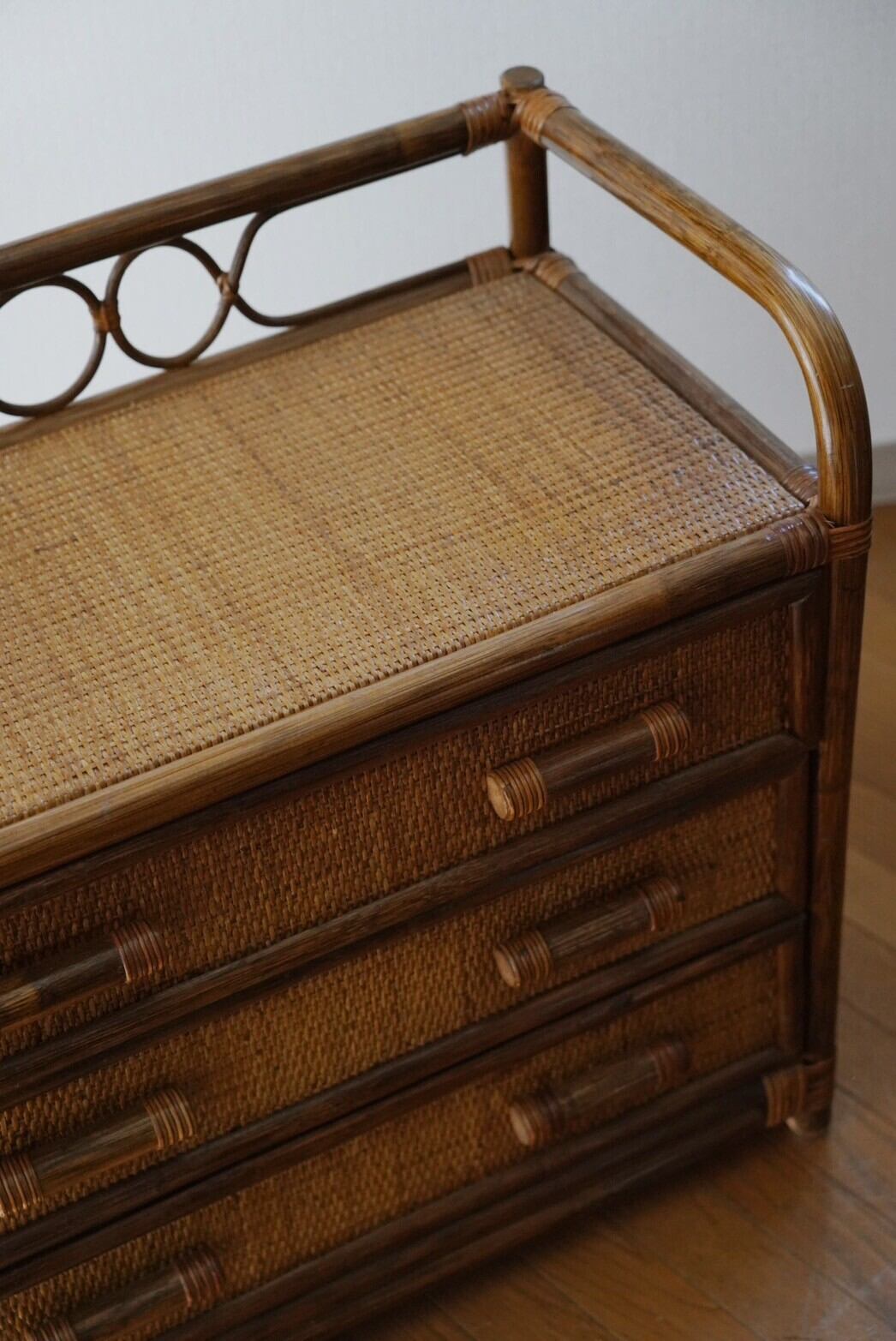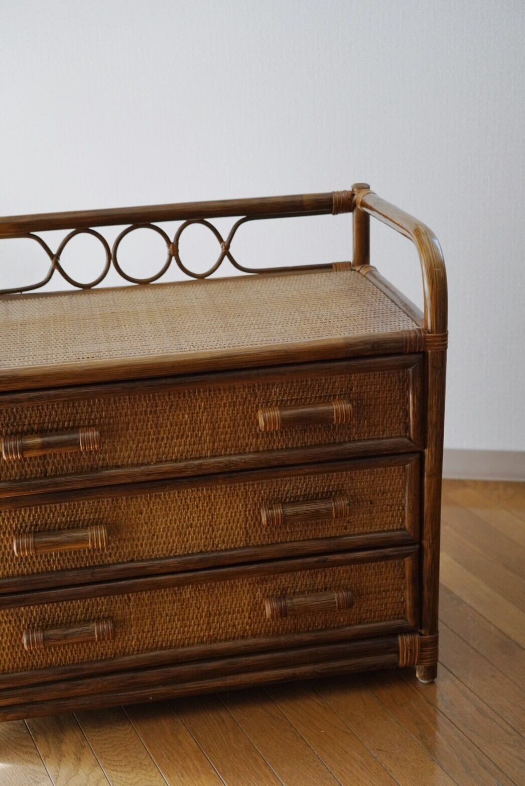 一人暮らしに最適♡ローサイズの3段ラタンチェスト