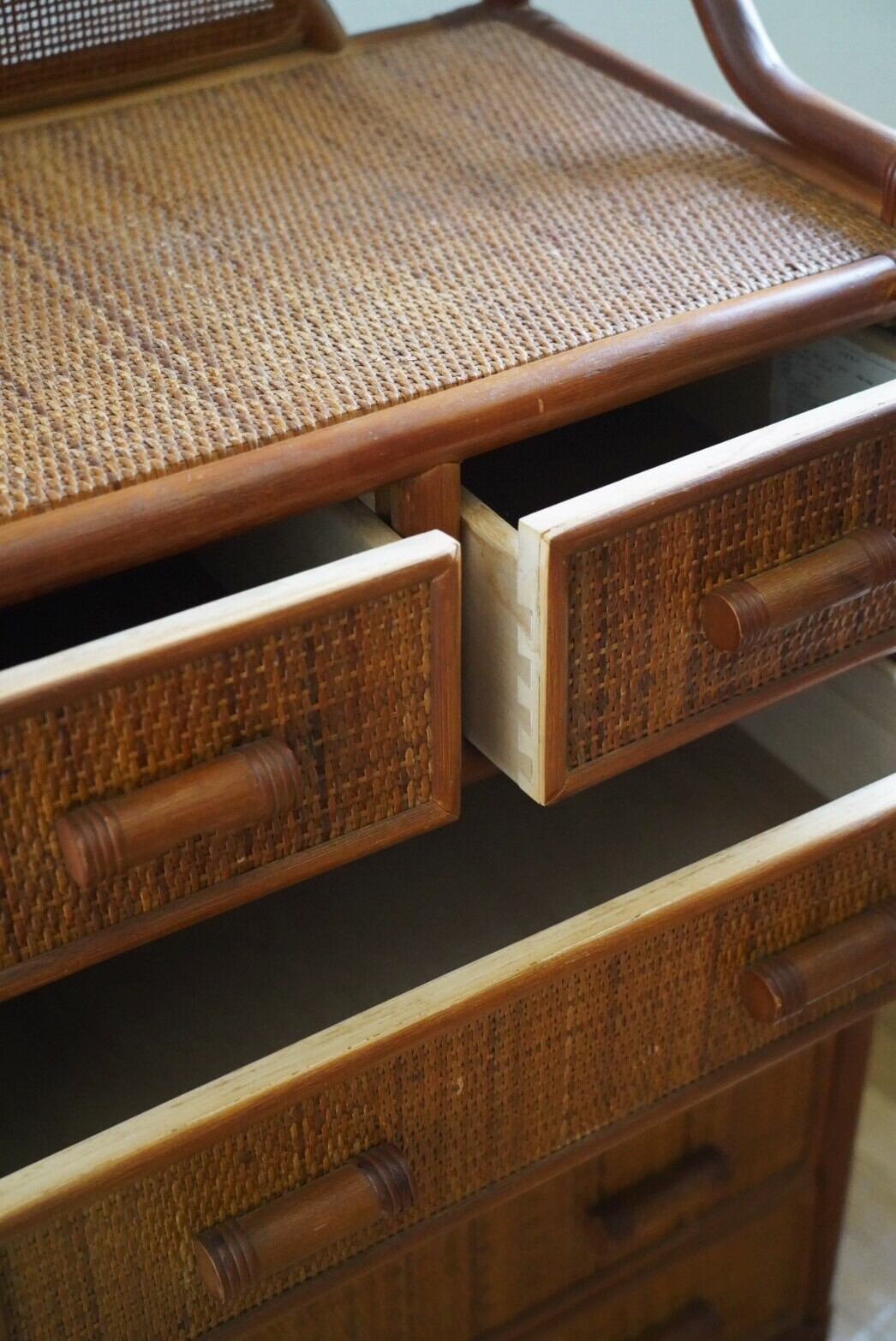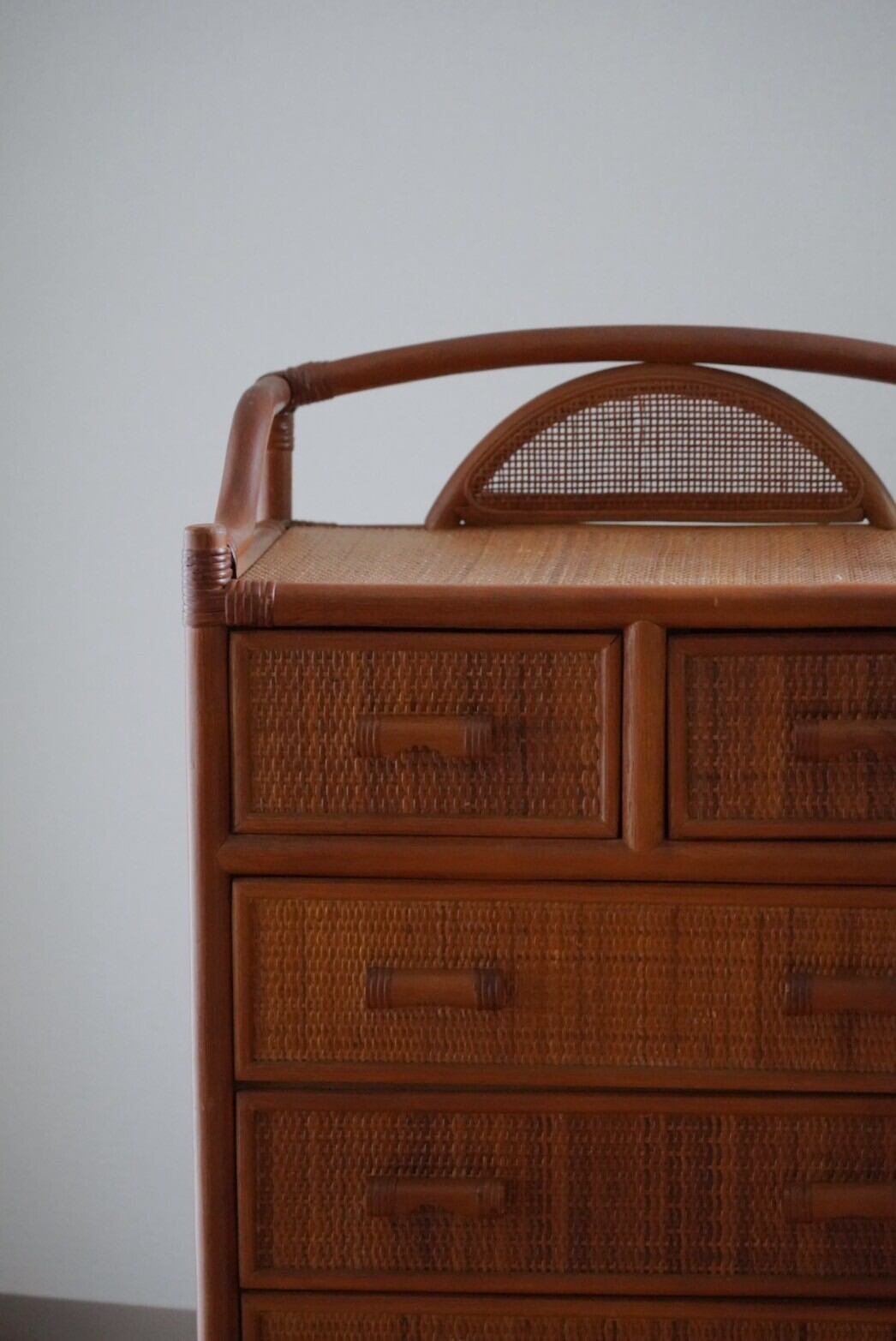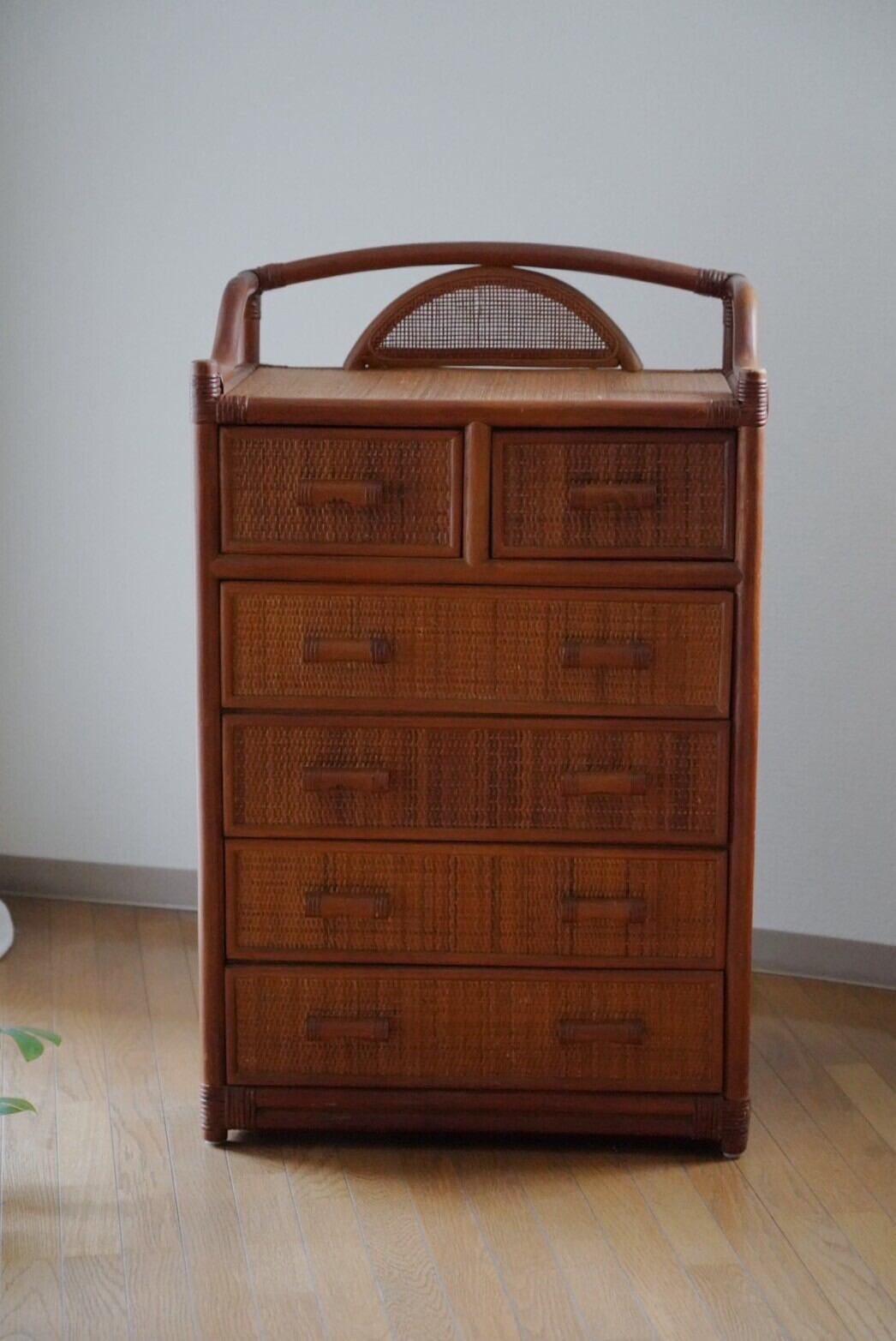 小さい引き出しと大きな引き出しの5段ラタンチェスト2025