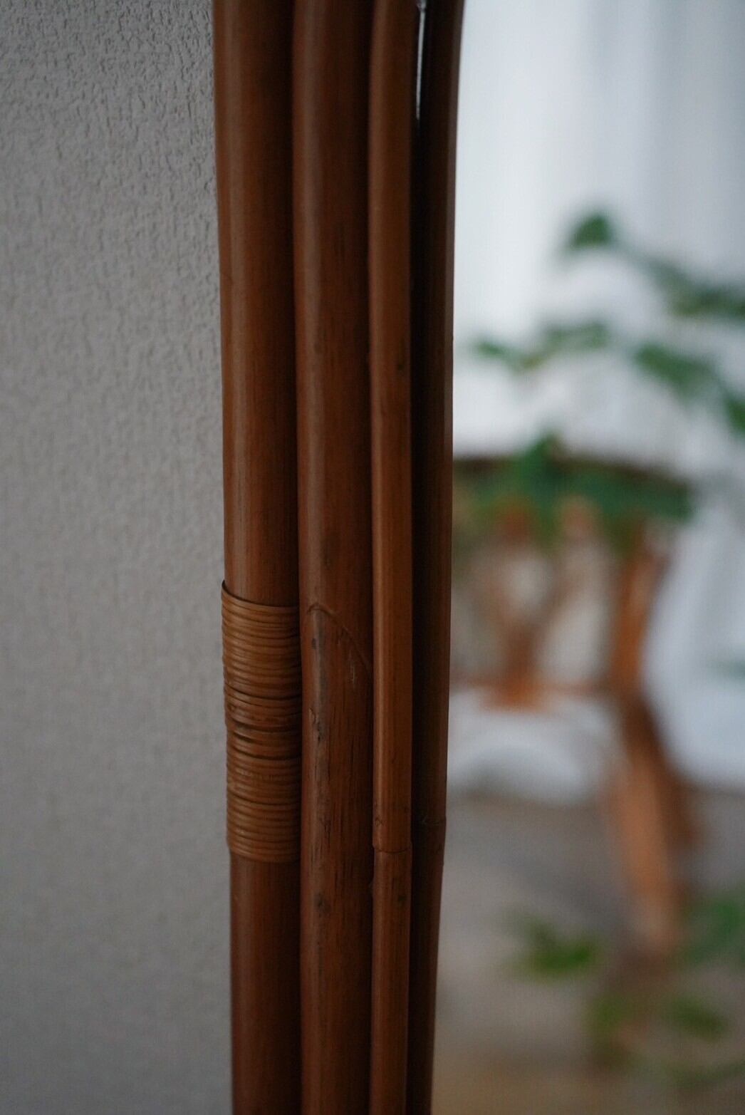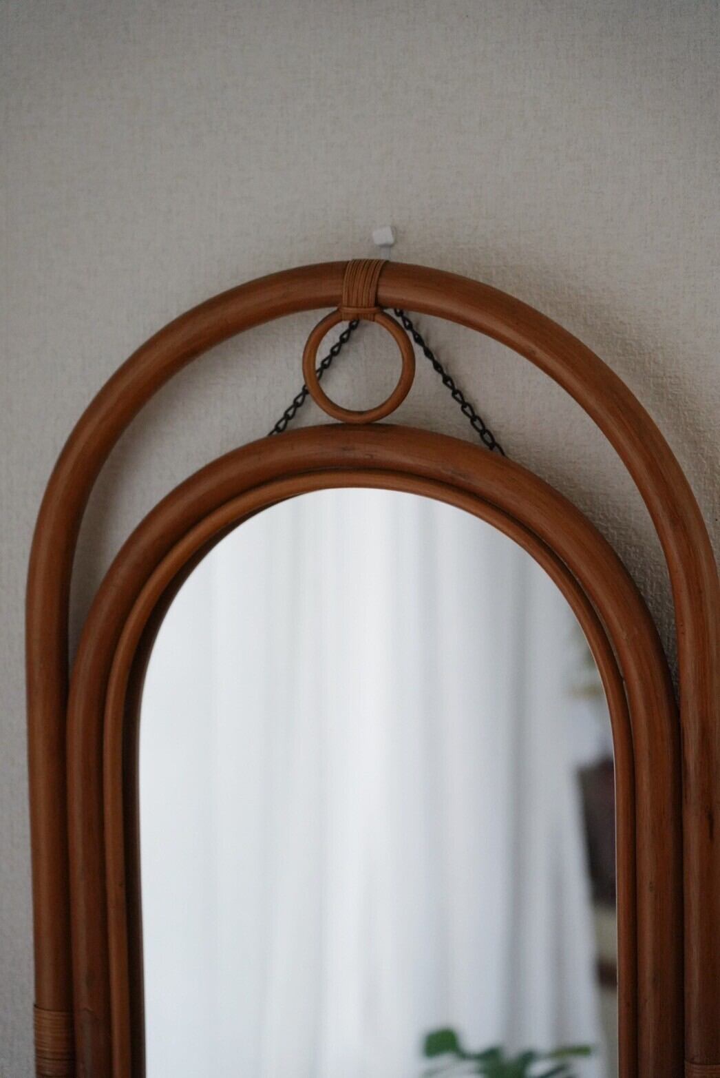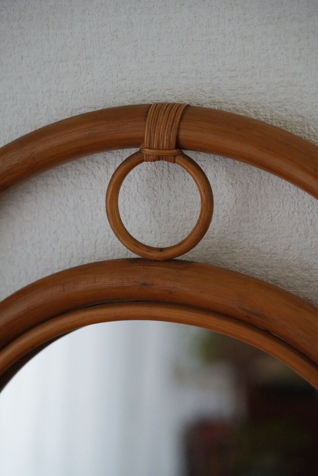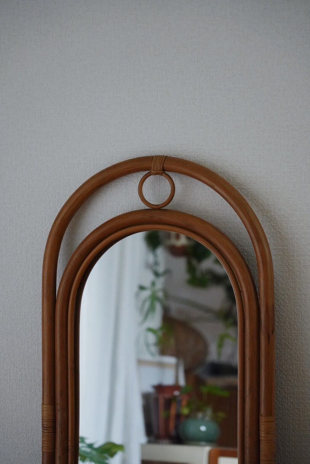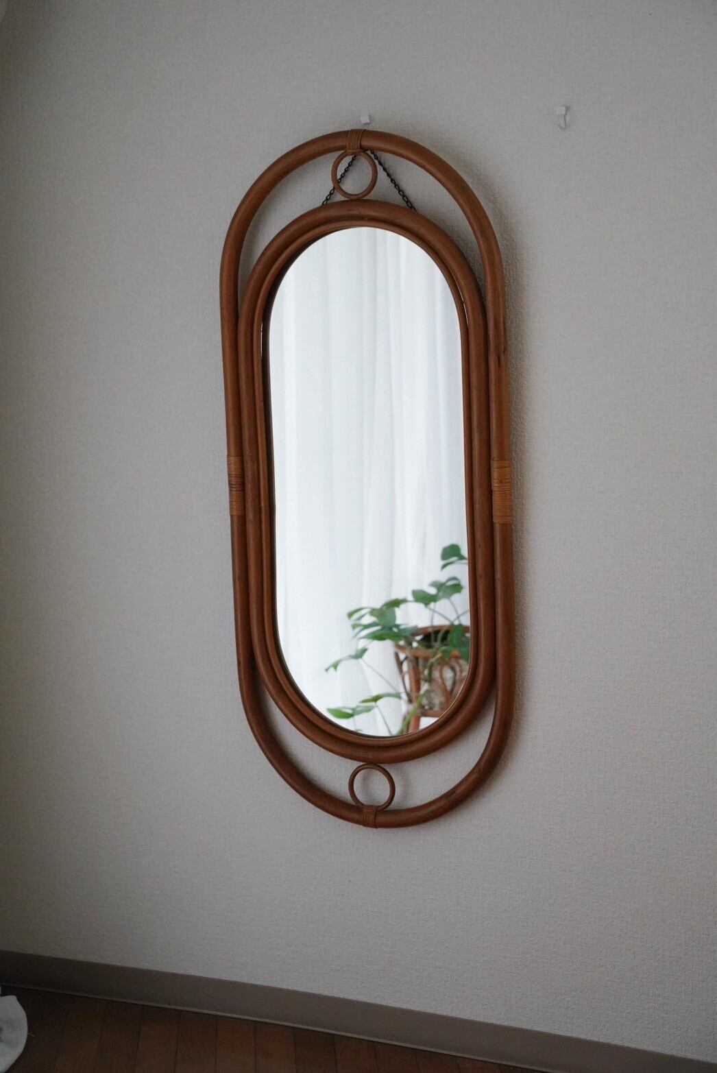 上下の飾りとまるいフォルムが可愛いラタンミラー