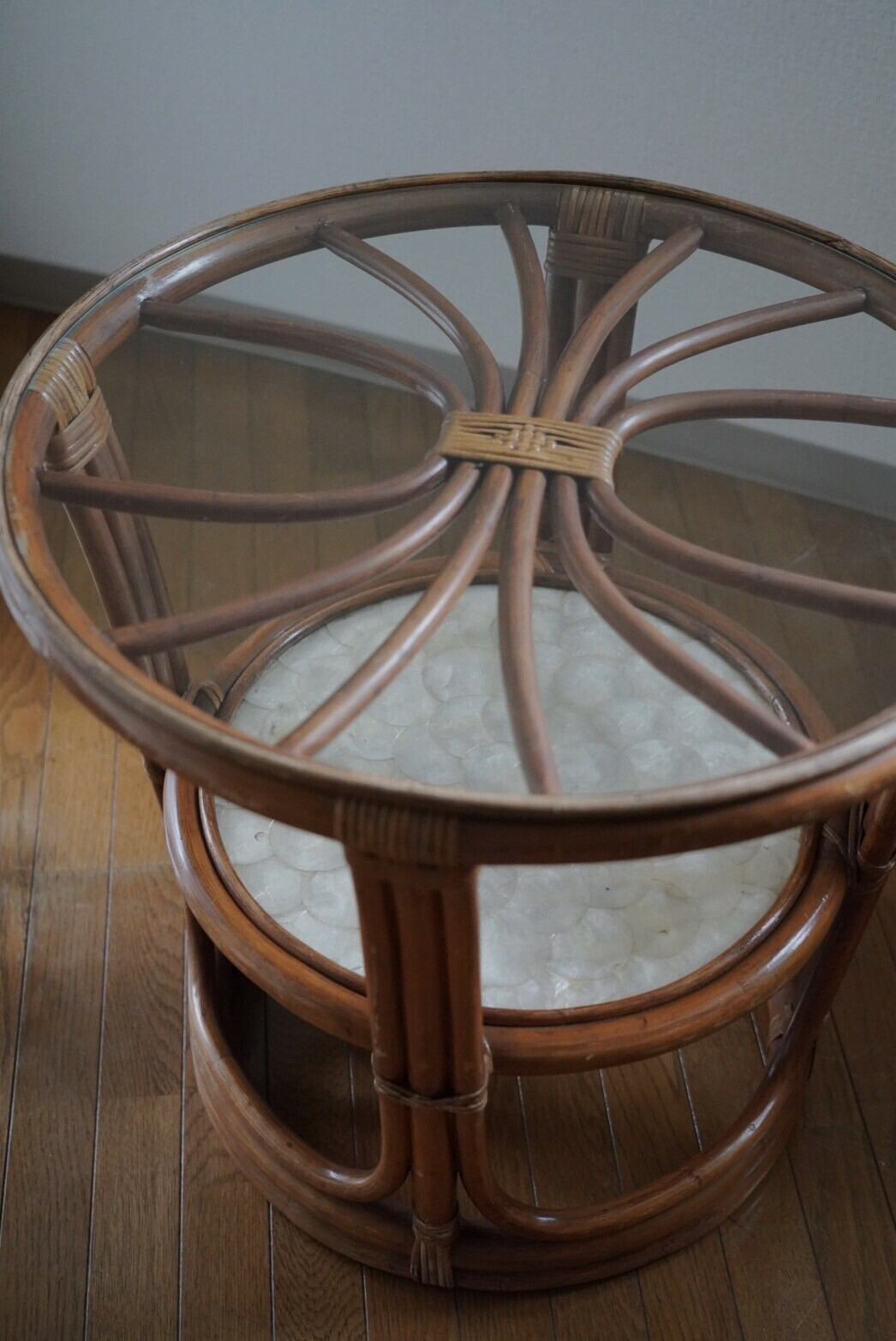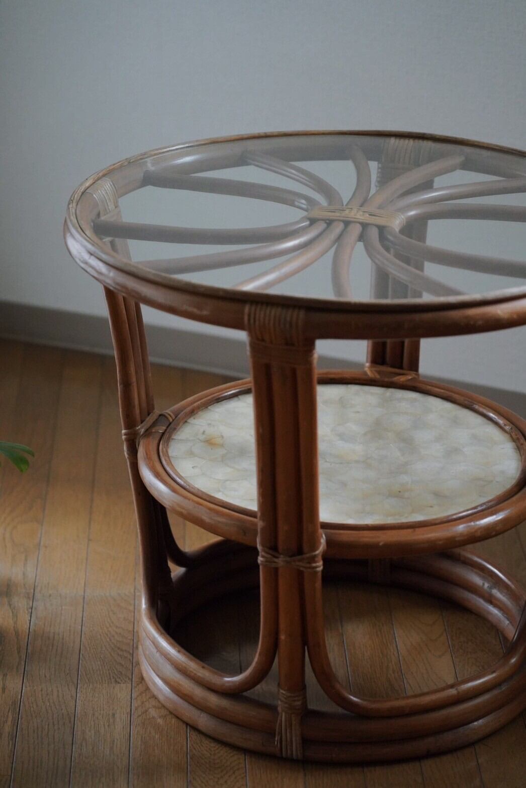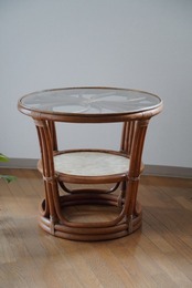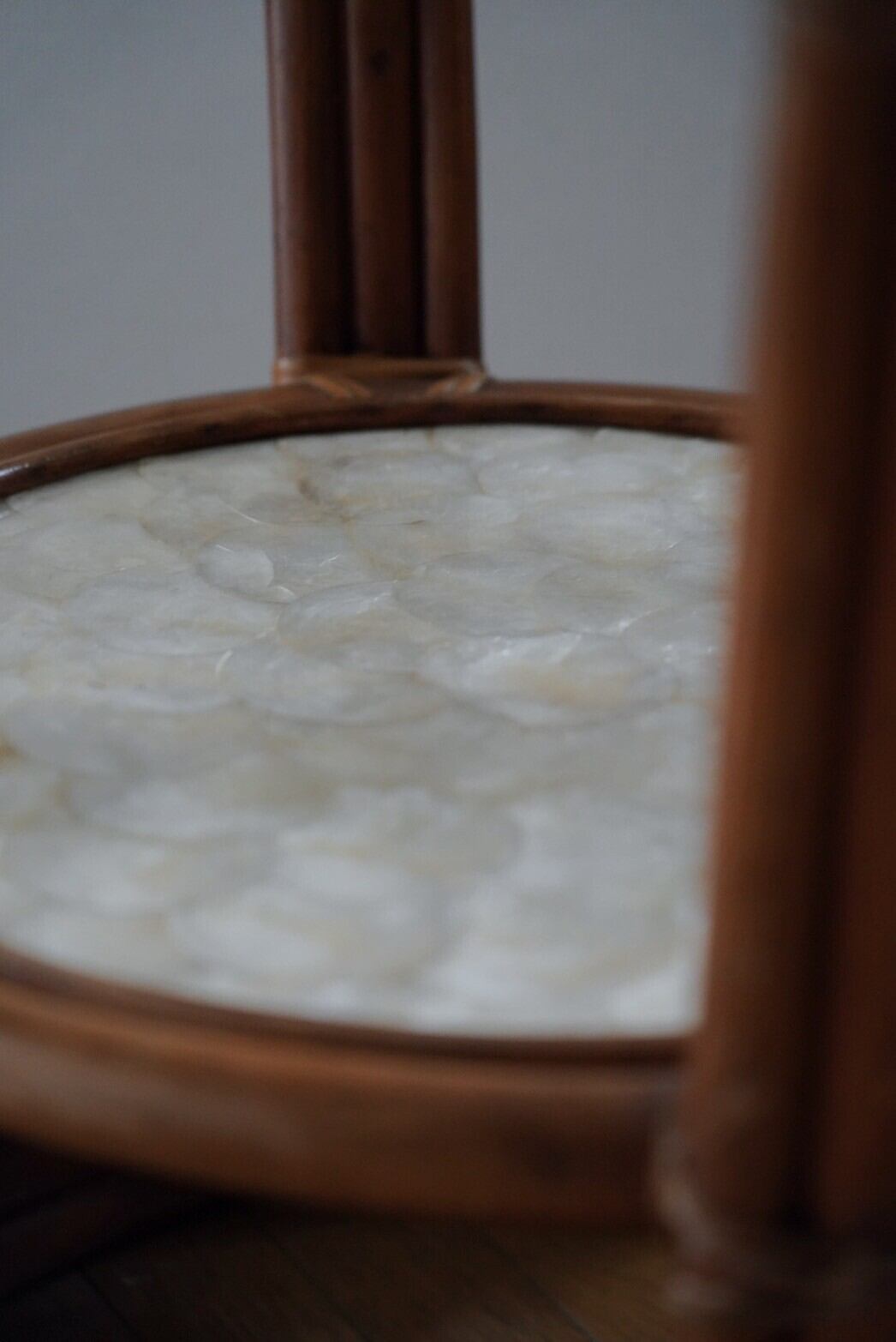 シェル部分と網目が見える可愛いラタンテーブル