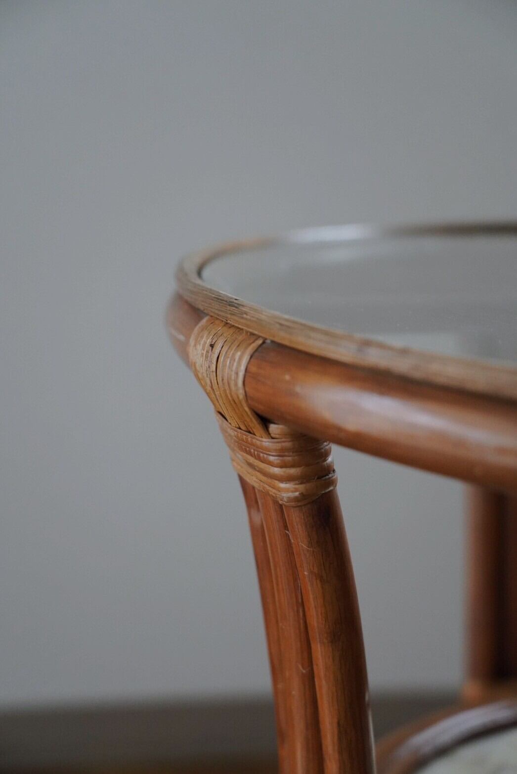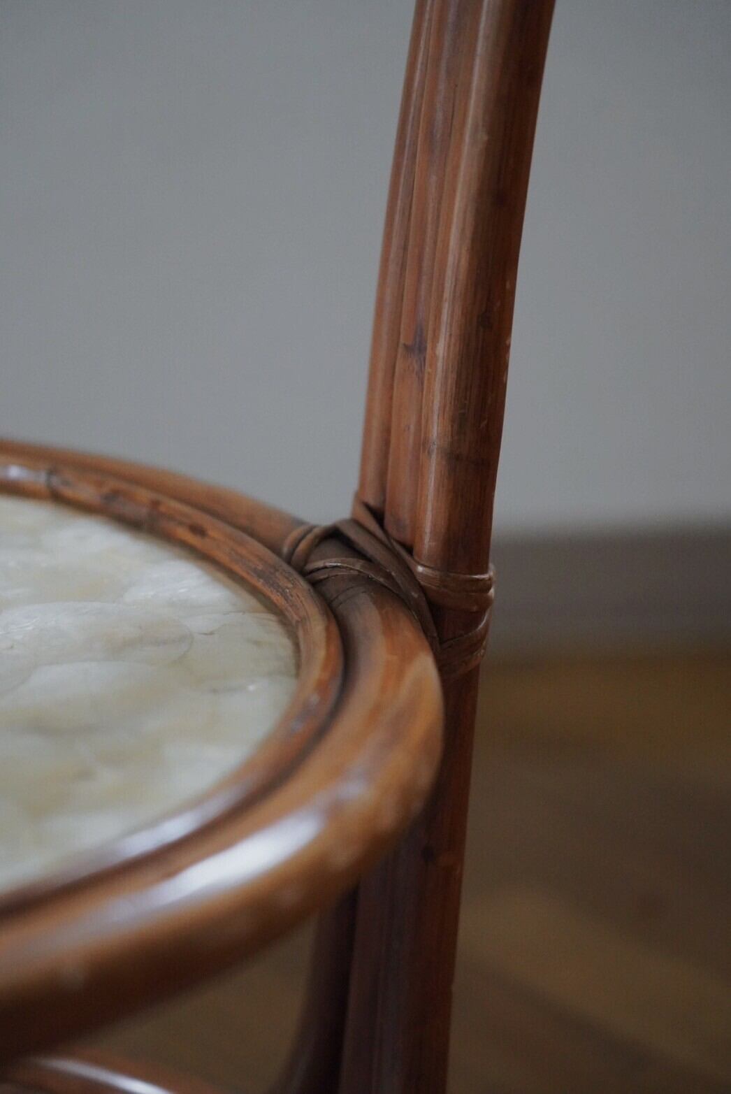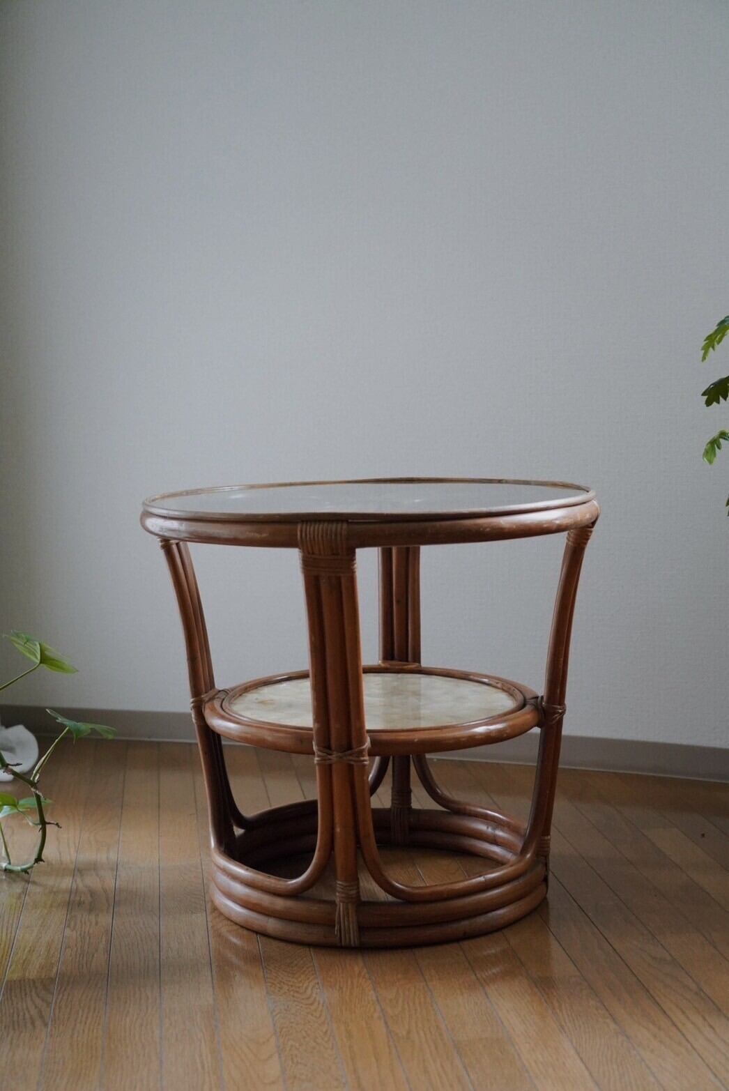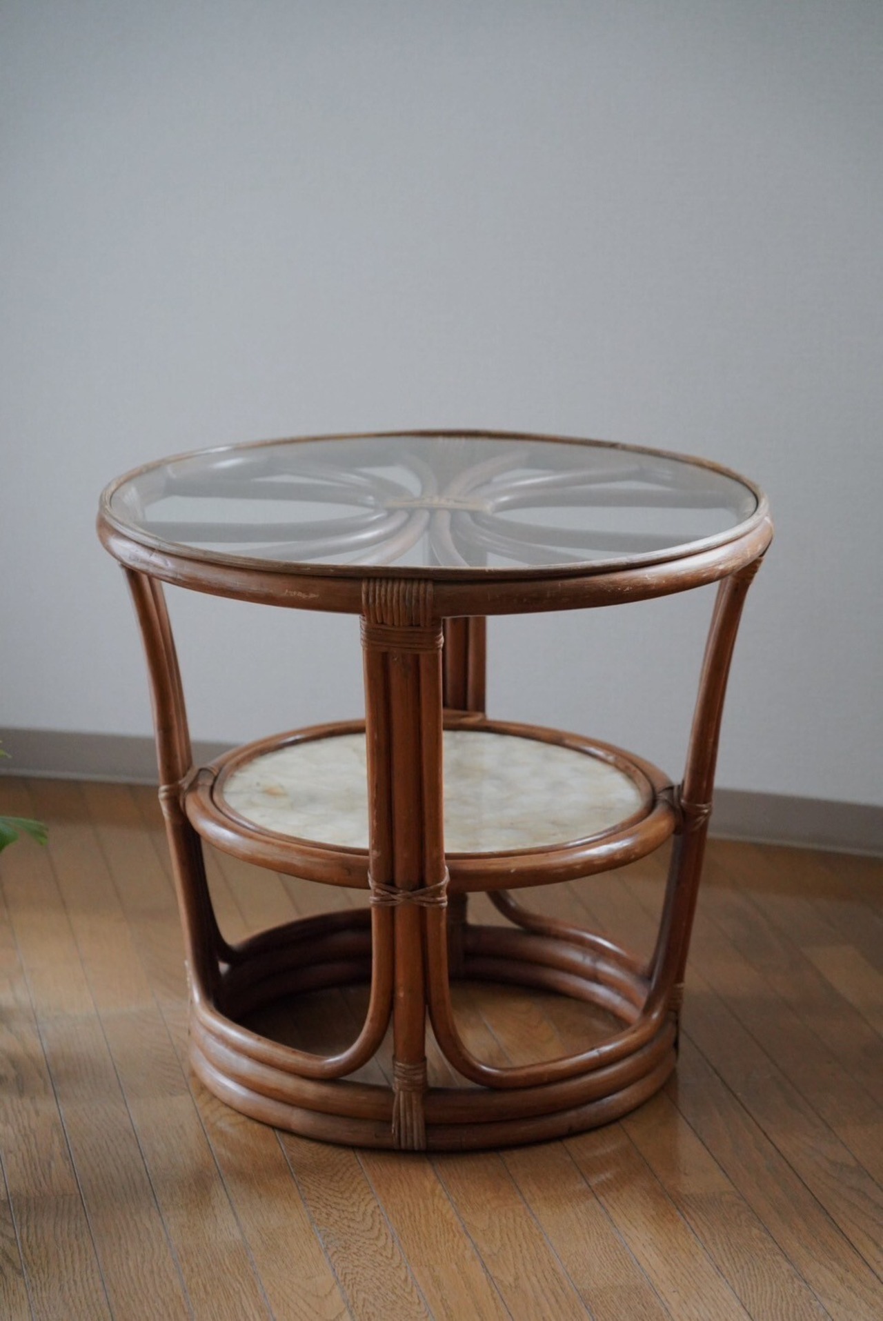 シェル部分と網目が見える可愛いラタンテーブル