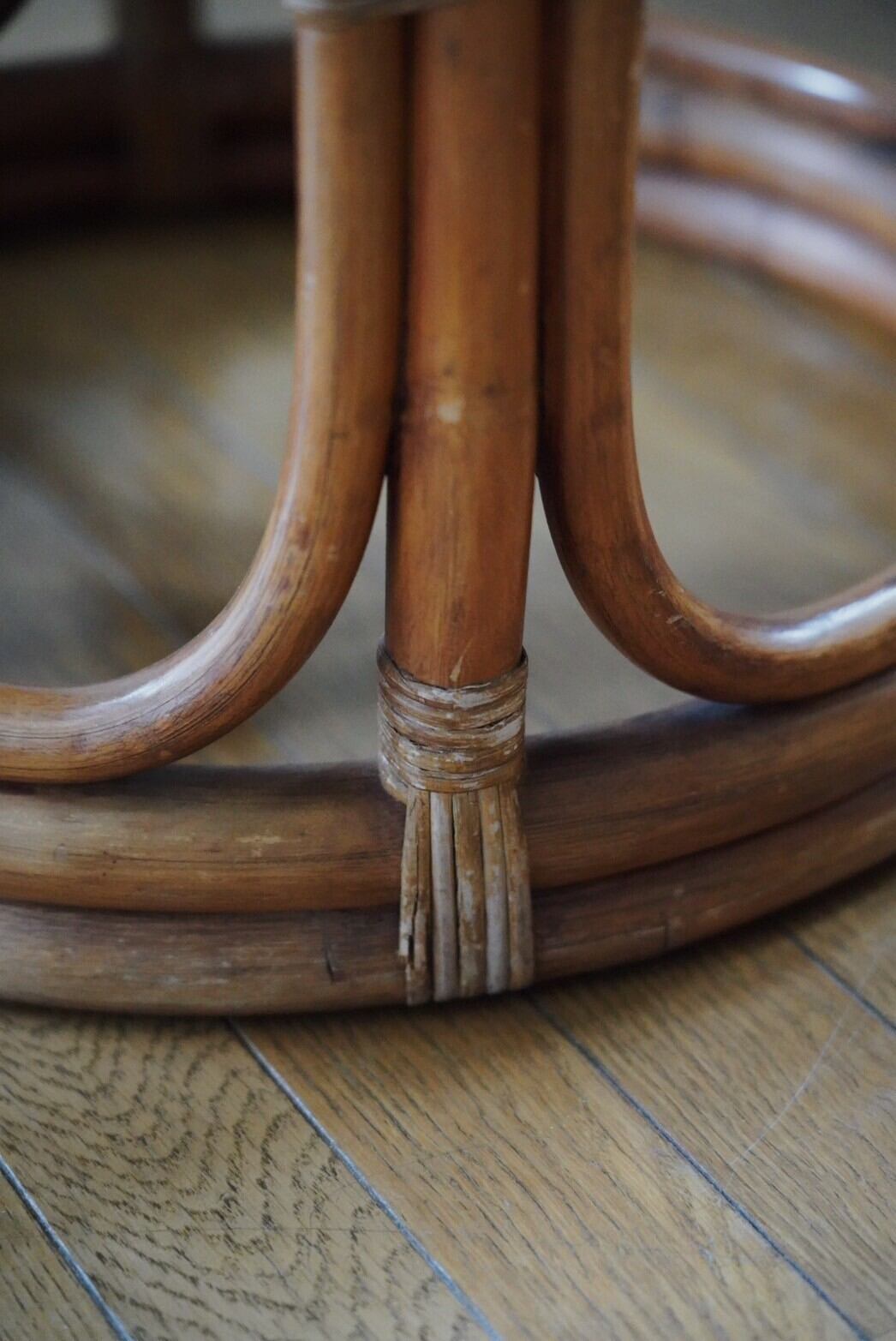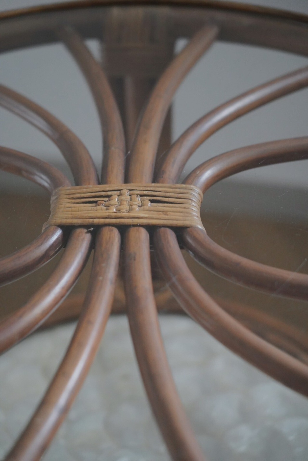これは珍しい!シェルの部分があるラタンテーブルはあまり見たことがないですね!